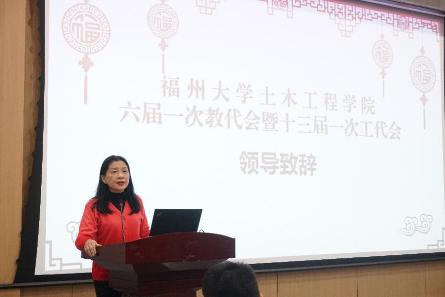 校工会常务副主席程玉敏同志对大会的召开表示热烈的祝贺,充分肯定了学院各方面工作所取得的成绩,希望学院工会紧紧围绕学校和学院工作重心,发挥工会群团优势和桥梁纽带作用,凝心聚力,积极推动教职工为学校和学院的发展做出新的贡献。