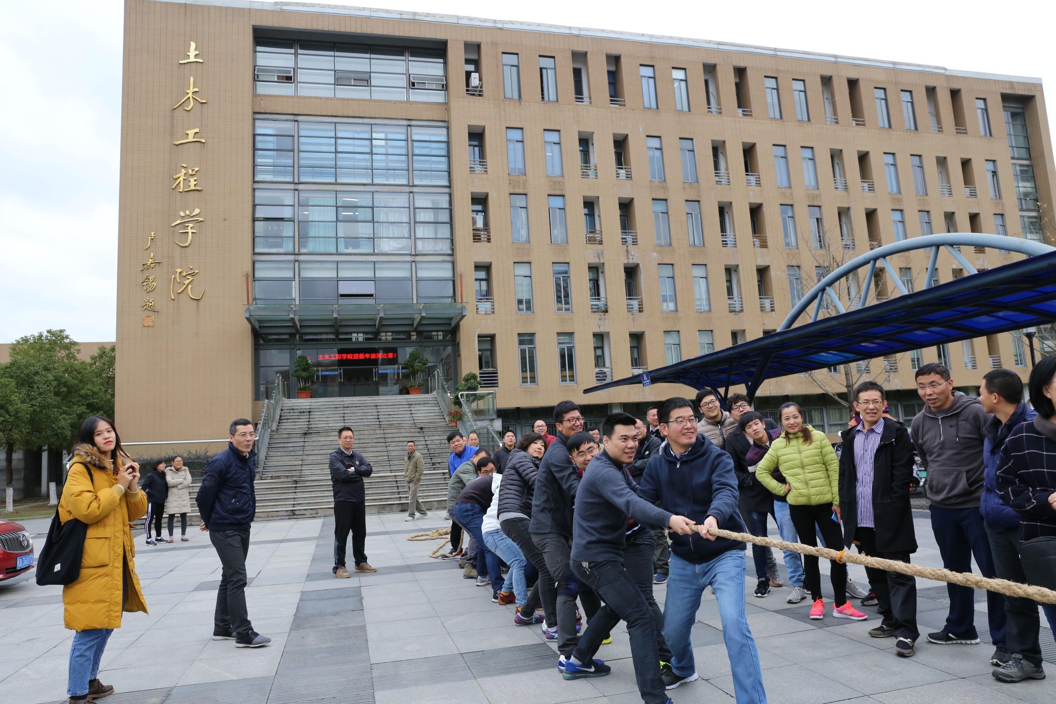教职工业余文化生活,培养教师的团结合作精神和积极拼搏精神,同时也为迎接新年的到来,学院工会于2018年12月27日下午在学院大楼广场举行迎新年拔河比赛,全院教职工踊跃参与。