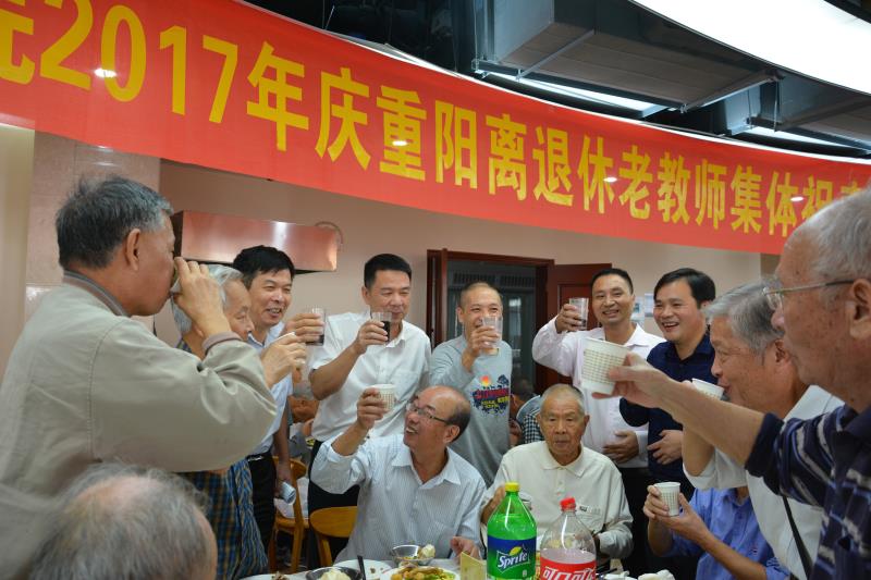 参观结束之后,学院为老教师们在自助茶餐厅举行重阳节祝寿活动,学院的党政领导班子出席了祝寿活动,黄培明书记在活动中向全体离退休教师致以节日的问候,对为肉便器