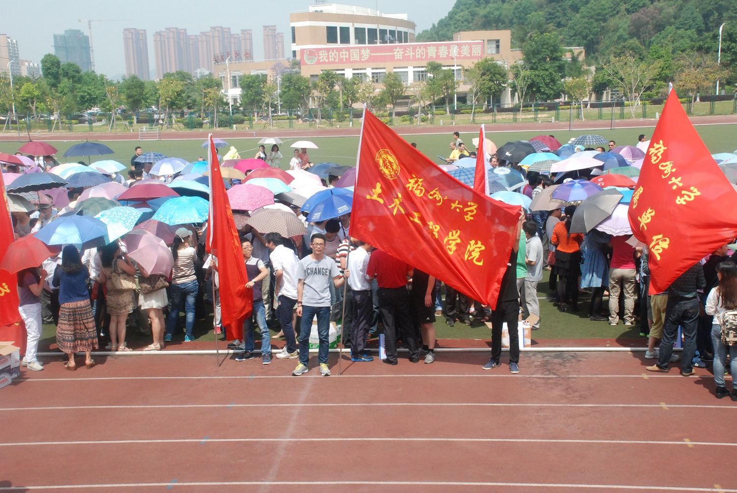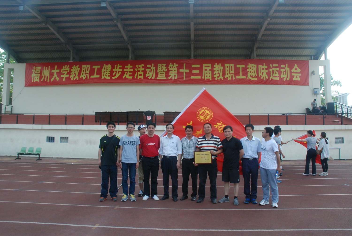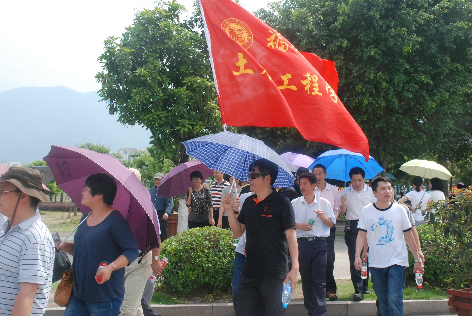 派出了党委副书记陈德铭带领,包括工会主席郑则群、党委秘书钱升、团委书记许长宾在内的近八十名教职工出征本次活动。本次运动会由环校健步走活动拉开帷幕,虽然天气炎热,但是一路上教职工们依然欢声笑语不断,感慨福大变化之快,尤其是对陈宝春院长新设计的拱桥赞叹有加。