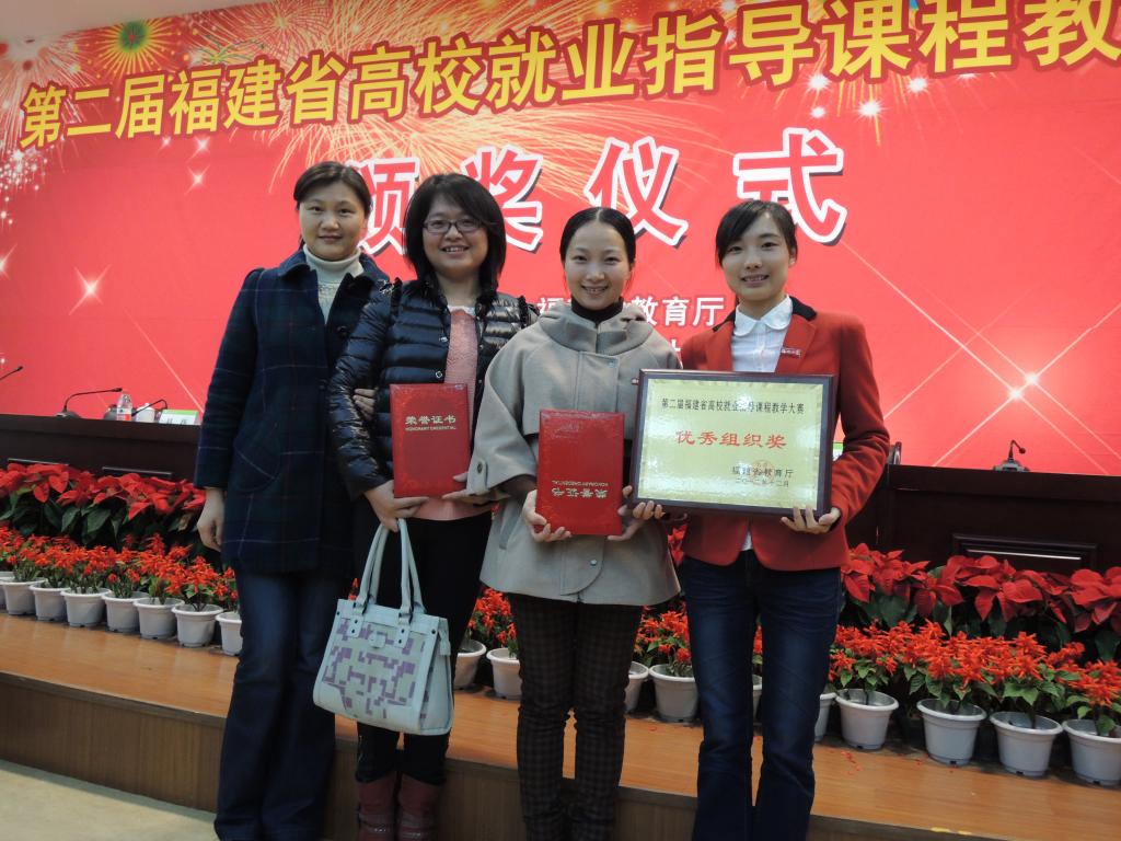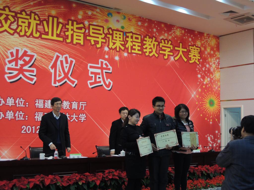 2012年12月25日至28日,第二届福建省高校就业指导课程教学大赛在福建农林大学举行。本次大赛由福建省教育厅主办,由省内各高校推荐选手参加初赛,经过专家组严格评审,最终评选出40名(本科院校20名,专科院校20名)教师参加决赛。