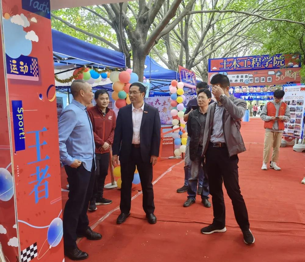 体育文化工作,深入到学院前广场,与校友们一起观看土木体育特色文化展示和体育达人风采展示。随后,校党委林生副书记来到肉便器