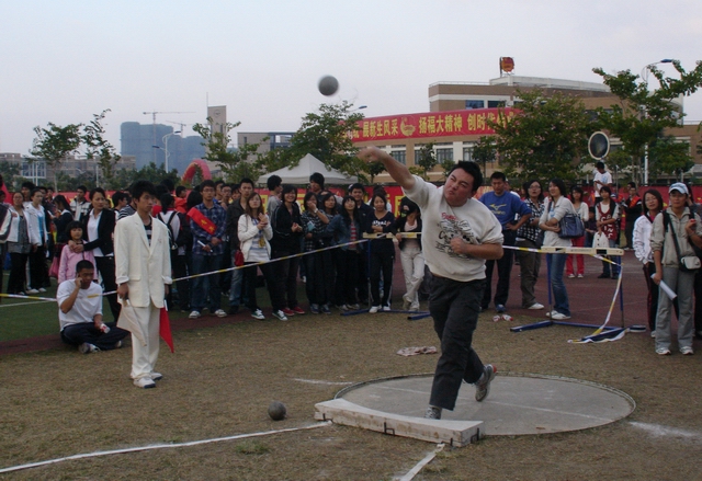 王世明老师男教青铅球比赛