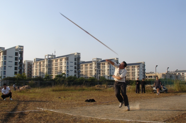 王世明老师男教青标枪比赛
