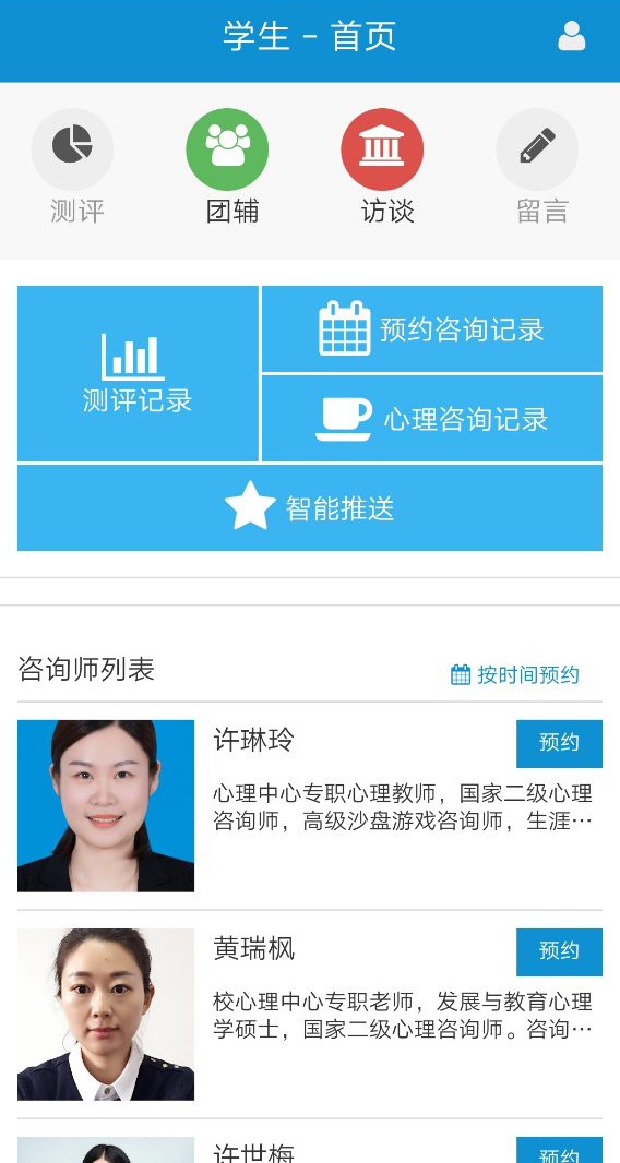 一、打开测评链接(//www.psy.com.cn/school/new/index.asp?school=67565),出现如下图界面,点击右上角“登录”,选择密码登录中的来访者,并输入用户名和密码(用户名为本人身份证号码,初始密码为身份证号后六位)