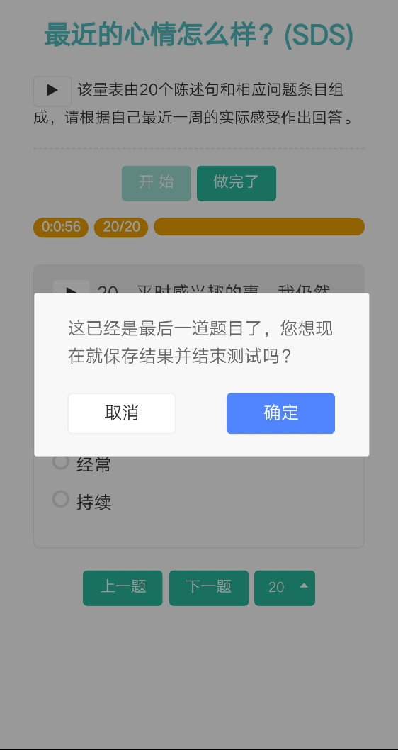 三、点击进入量表跳转测评界面,点击开始,并根据自身情况认真作答每道题目。两份量表均需完成。