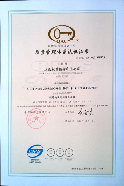 江西杭萧钢构有限公司成立以来承接了各类轻钢、重钢厂房钢结构,多层、高层钢结构、体育场馆会展中心等空间结构的施工,获得了客户的广泛赞誉。公司的质量方针是“保生存发展的质量,创杭萧钢构的品牌”。务实求生存,创新求发展,通过务实创新的经营与管理,确保生存发展的质量,创立杭萧钢构的品牌。