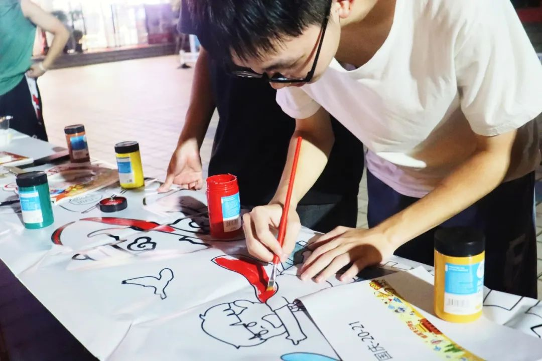 本活动线下绘画展览、历史配对等趣味活动同时开展,参加活动的同学们共同合作,完成了祝福祖国的长画卷,同时还进行了对福大六十五周年校庆的祝福活动,现场近500人参与手写卡片和录制祝福视频。