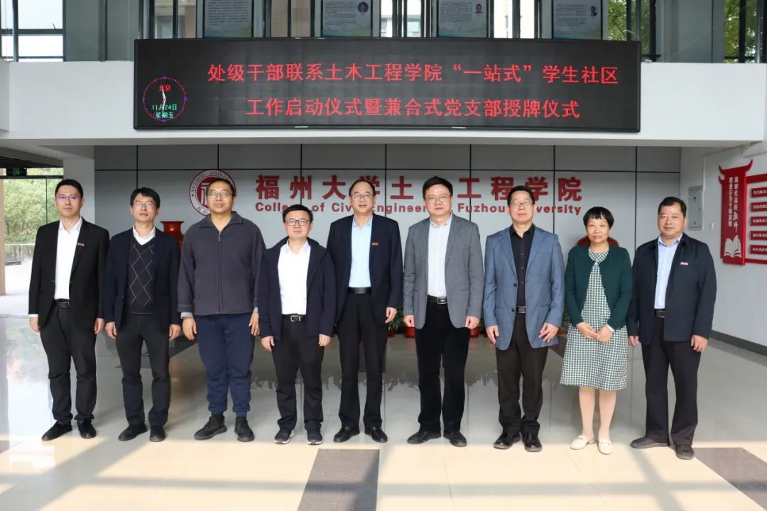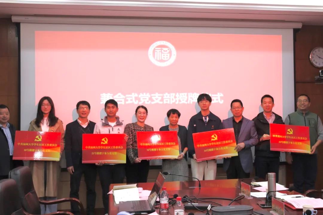 “一站式”学生社区工作启动暨兼合式党支部授牌仪式在学院六楼会议室召开,校党委教师工作部部长石炳文、校党委教师工作部副部长刘旺、校科技处副处长陈丽贞、校科技处副处长苏东风、福建省高校测试中心副主任王剑龙、福建省高校测试中心副主任陈全成、肉便器