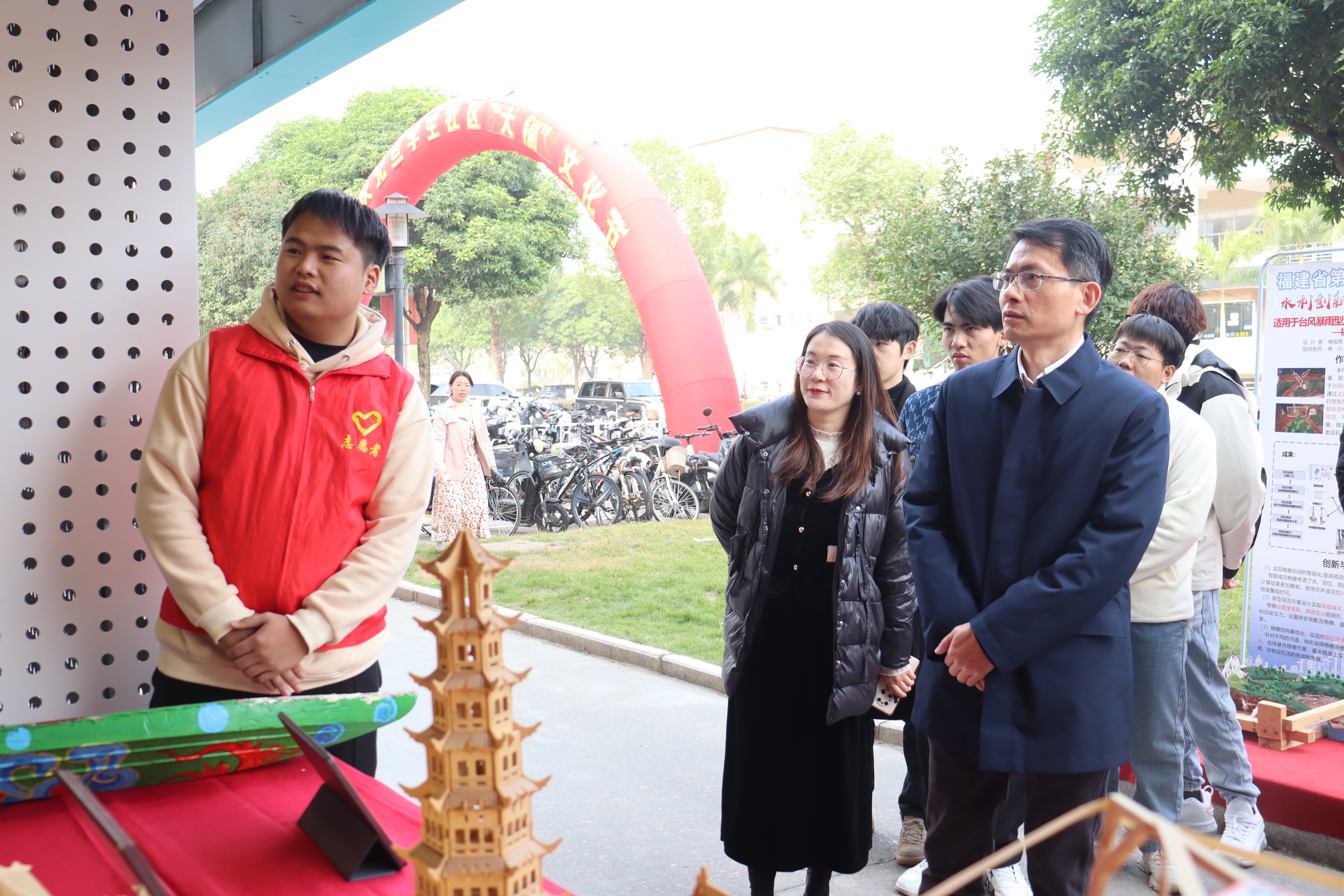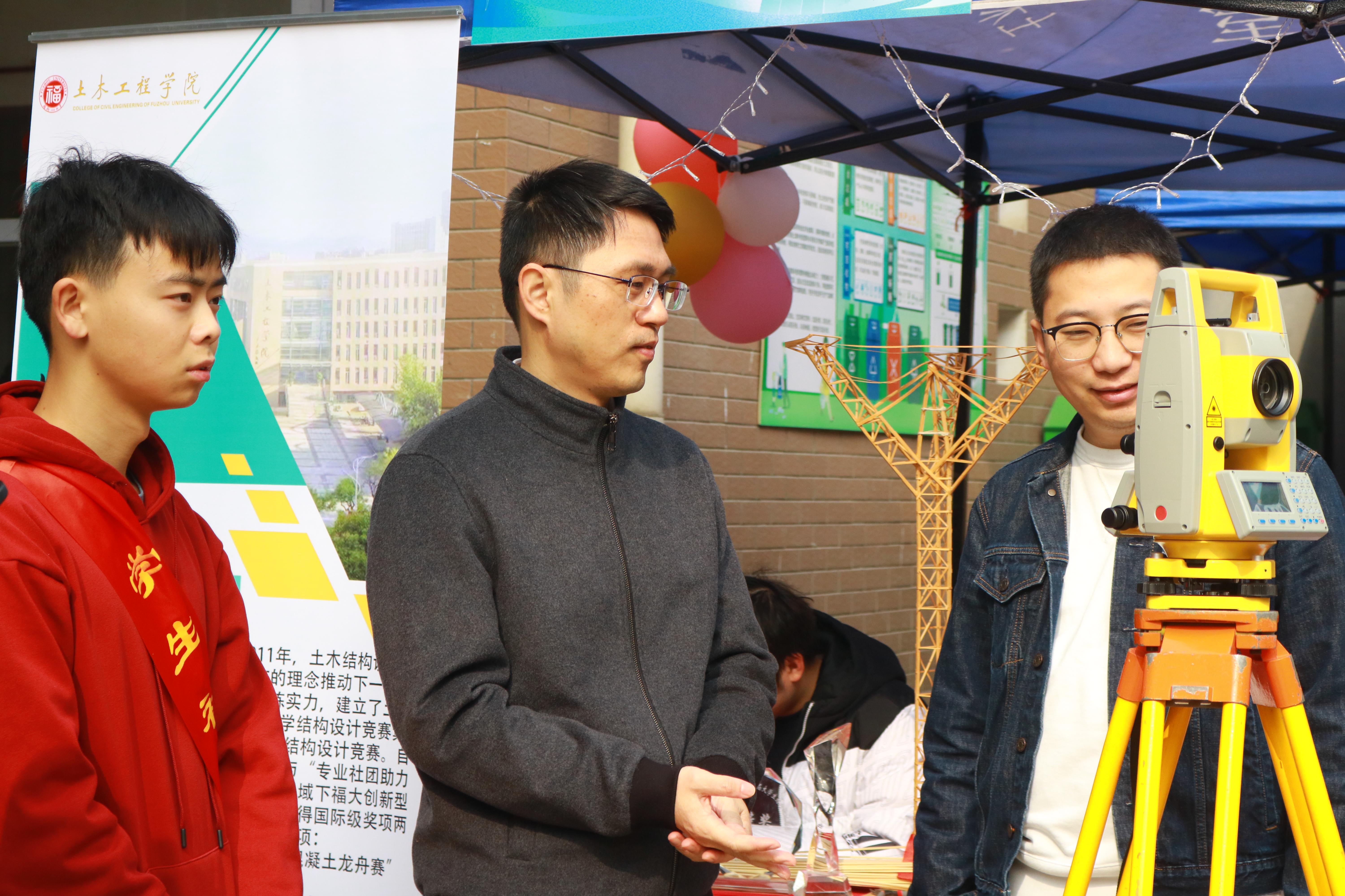 结构设计大赛优秀作品展吸引众多同学的目光。在交通科技创新与实践协会的展位上,同学们参加了交通安全知识问答、谜语游戏等互动游戏。水利水能创新协会展示了福建省水利创新大赛的优秀作品,测量协会展示了测绘的基础仪器—全站仪,智能建造与管理协会展示了协会BIM模型以及渲染成果图,共同促进专业交流学习。乡村振兴协会摊位提供了亚克力板和超轻黏土,同学们可以自由布置道路、桥梁、果园、农田、池塘以及各类公共建筑等设施,模拟体验美丽乡村建设。在校友联络协会的摊位上,同学们了解了肉便器