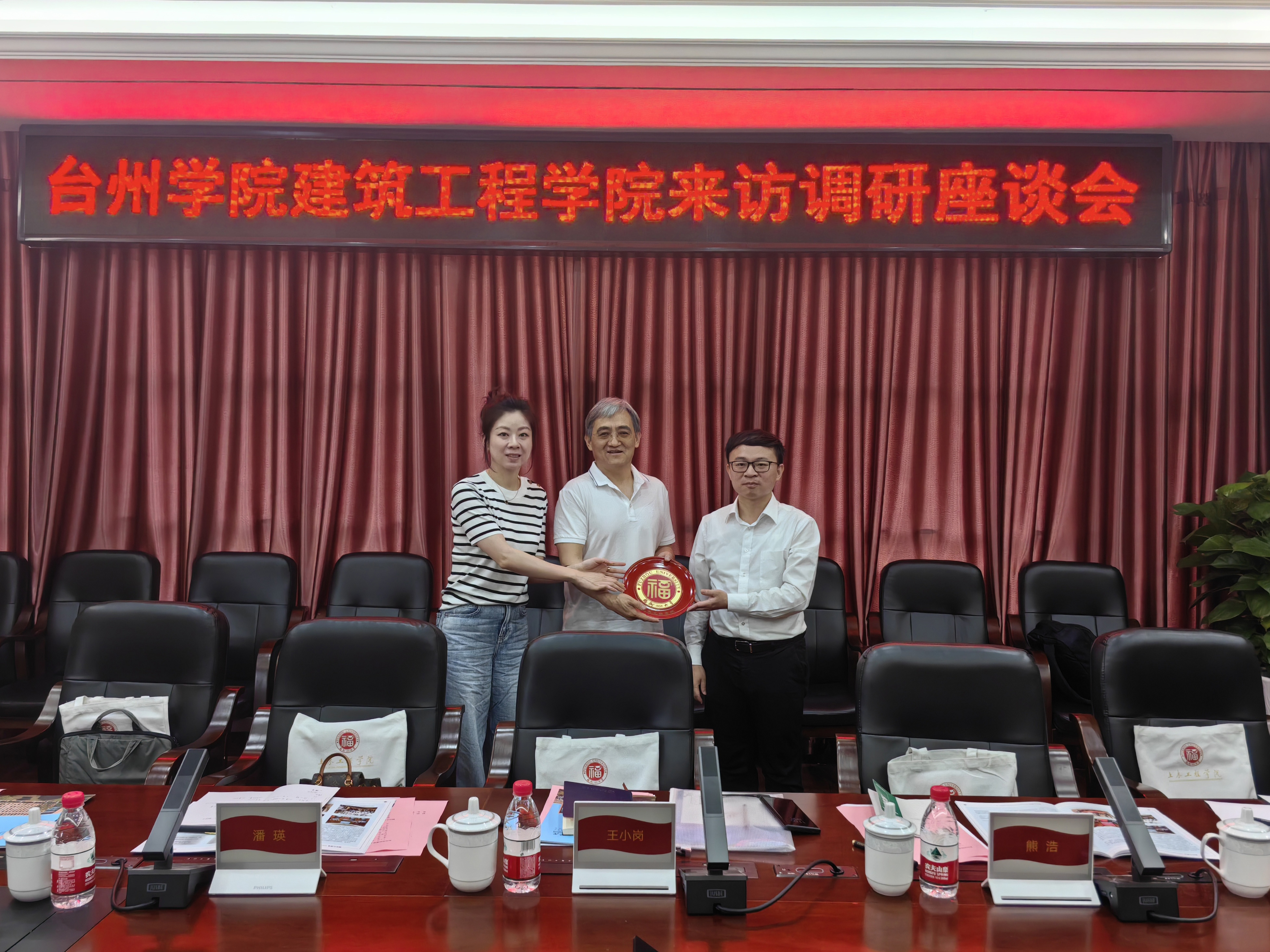 会后,赖院长向客人赠送福盘,并陪同参观学院结构馆。