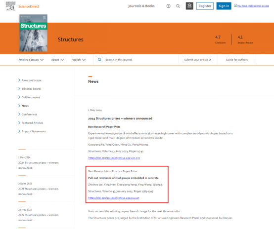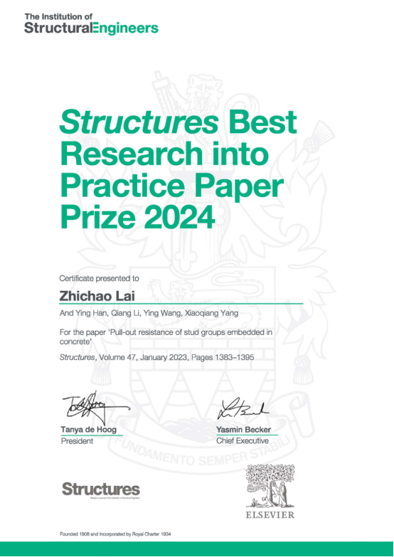 赖志超教授的研究团队喜获2024年度英国皇家结构工程师学会(The Institution of Structural Engineers)最佳应用研究论文(Best Research into Practice Paper Prize)大奖,是国内首个获奖的团队。