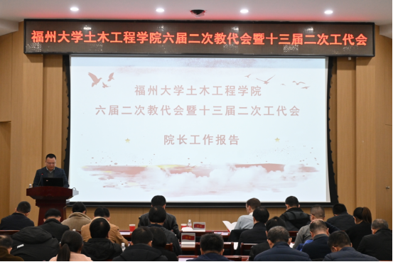 大会还听取院工会主席王渠同志2024年工会工作报告,报告总结了学院工会在院党委和上级工会的正确领导下,在院行政的大力支持下,坚持以习近平新时代中国特色社会主义思想为指导,始终聚焦保持和增强政治性、群众性,积极作为,凝心聚力,改革创新,充分发挥工会民主管理、民主参与、民主监督的作用,认真维护教职工合法权益,关注和解决教职工的利益问题,以将学院建设成为土木人的和谐之家为已任,为推动学院“双一流”建设发挥了应有的作用,各项工作取得了新成效。