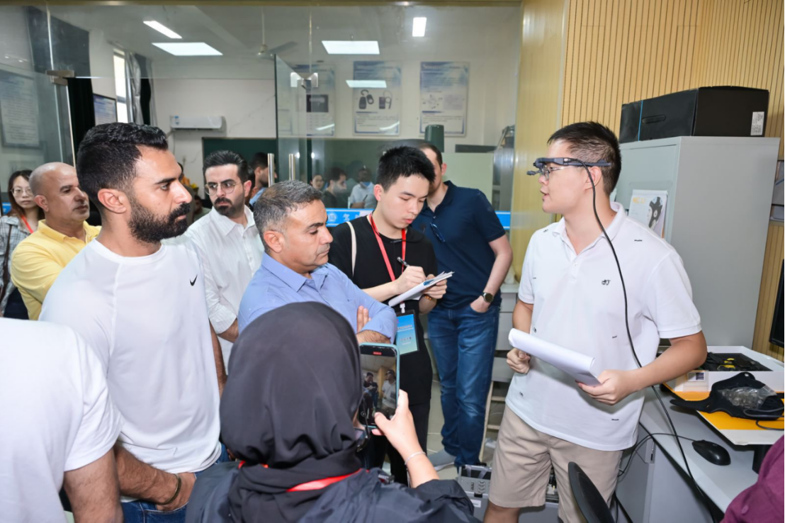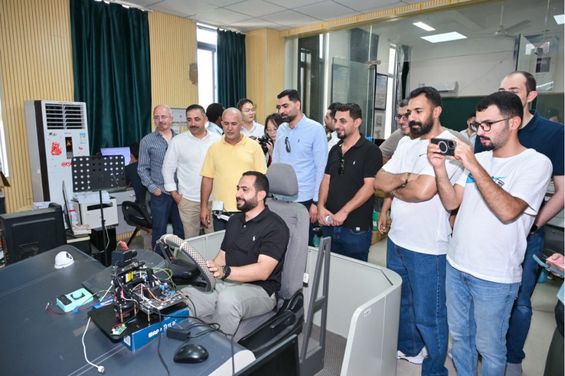 随后,学员们参观了交通安全实验室,该实验室团队自2011年成立以来,在杨艳群教授、郑新夷博士等核心成员的带领下,聚焦交通安全设施优化与驾驶行为研究、驾驶员疲劳与心理状态监测、智能交通系统与多学科融合等核心方向。实验室现场,郑新夷博士重点展示了团队的两项自主研发成果,引发学员们的高度关注。其中,驾驶员疲劳监测与干预系统集成了人脸检测、面部特征点识别、语音交互等多模态技术,结合脑电监测数据,可精准判断疲劳状态。另一项位移与角度监测系统则聚焦交通基础设施的长期运维安全。通过低成本、高精度的MPU6050传感器,结合先进的感知技术、服务器与终端模块,这一系统实现了实时监测交通设施的位移与角度变化,并在发生异常时发出警报。来自约旦的学员们围绕技术细节展开热烈讨论,现场交流从技术原理延伸至实际应用,气氛十分活跃。