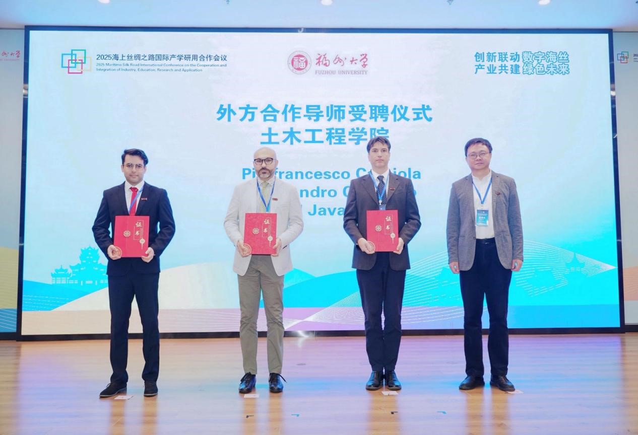 开幕式期间,学院吴唐风书记为联合培养外籍导师Pierfrancesco Cacciola教授、Alessandro Contento教授、Ahad Javanmardi副教授颁发聘书。根据合作规划,受聘专家将深度参与研究生联合培养工作,为肉便器