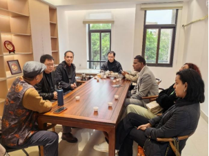 ,福州市进出口商会及金强(福建)绿色人居集团代表陪同访问。学院党委书记吴唐风、院长助理袁辉辉研究员及建筑工程系沈为民教授接待来宾。