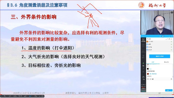 “你的专业能力、教学水平、教学资源和教学态度是上好一门课程根本要素。”方绪华老师主讲《测量学》课程,自开展线上教学以来,积极探索“理论+实践”的课程内涵与外延,为提高线上教学质量和学生课程投入,通过线上点名签到、课堂在线练习、线上讨论以及情境化、案例化练习,大大提高了学生的课程兴趣和自主学习积极性。