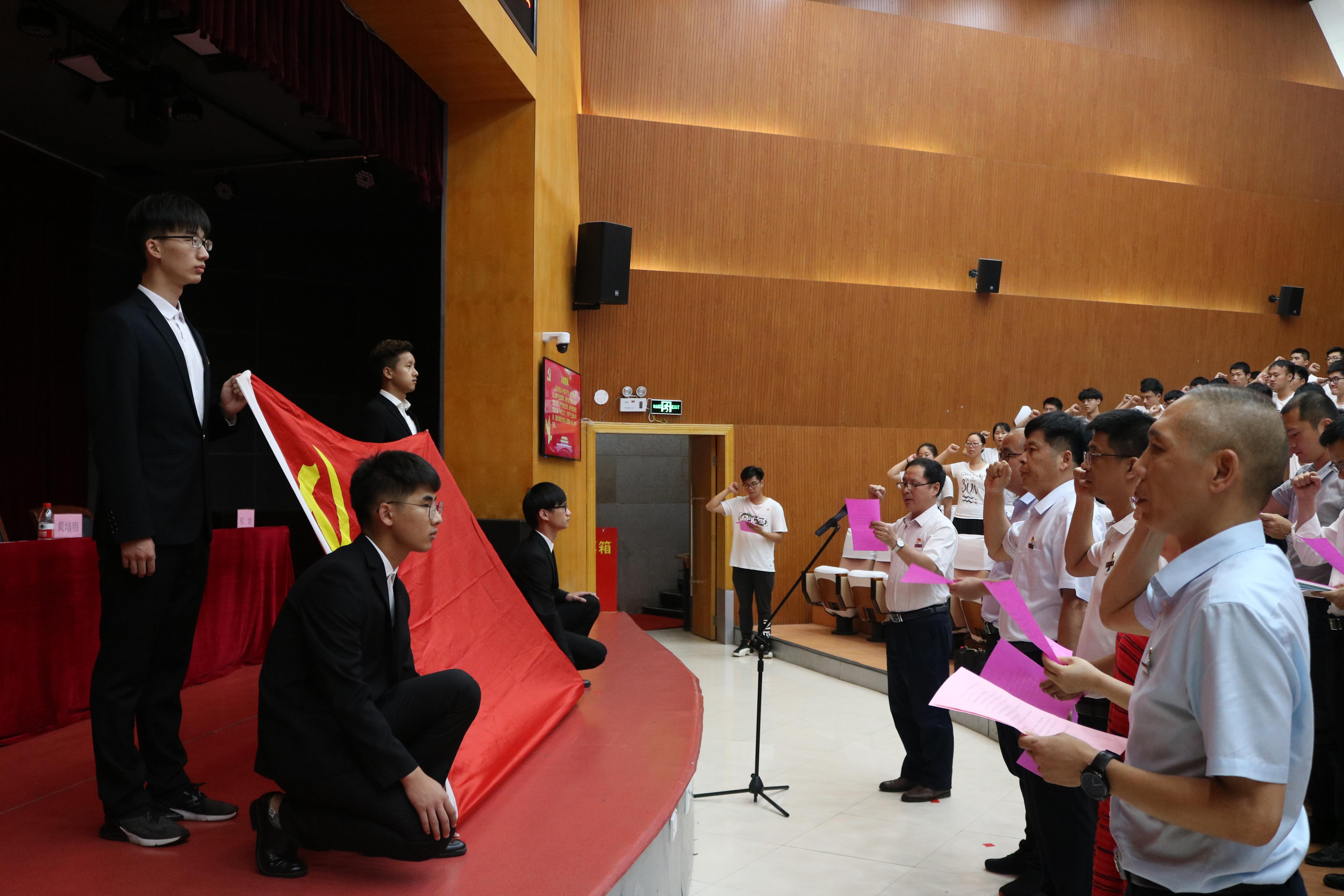 最后,在院党委宣传委员方绪华同志的带领下,全体师生党员举右手齐肩握拳,在庄严的党旗下重温入党誓词。相信在仪式感的召唤下全院师生党员能坚定理想信念,永葆进取精神;能艰苦奋斗,秉持廉洁自律作风。