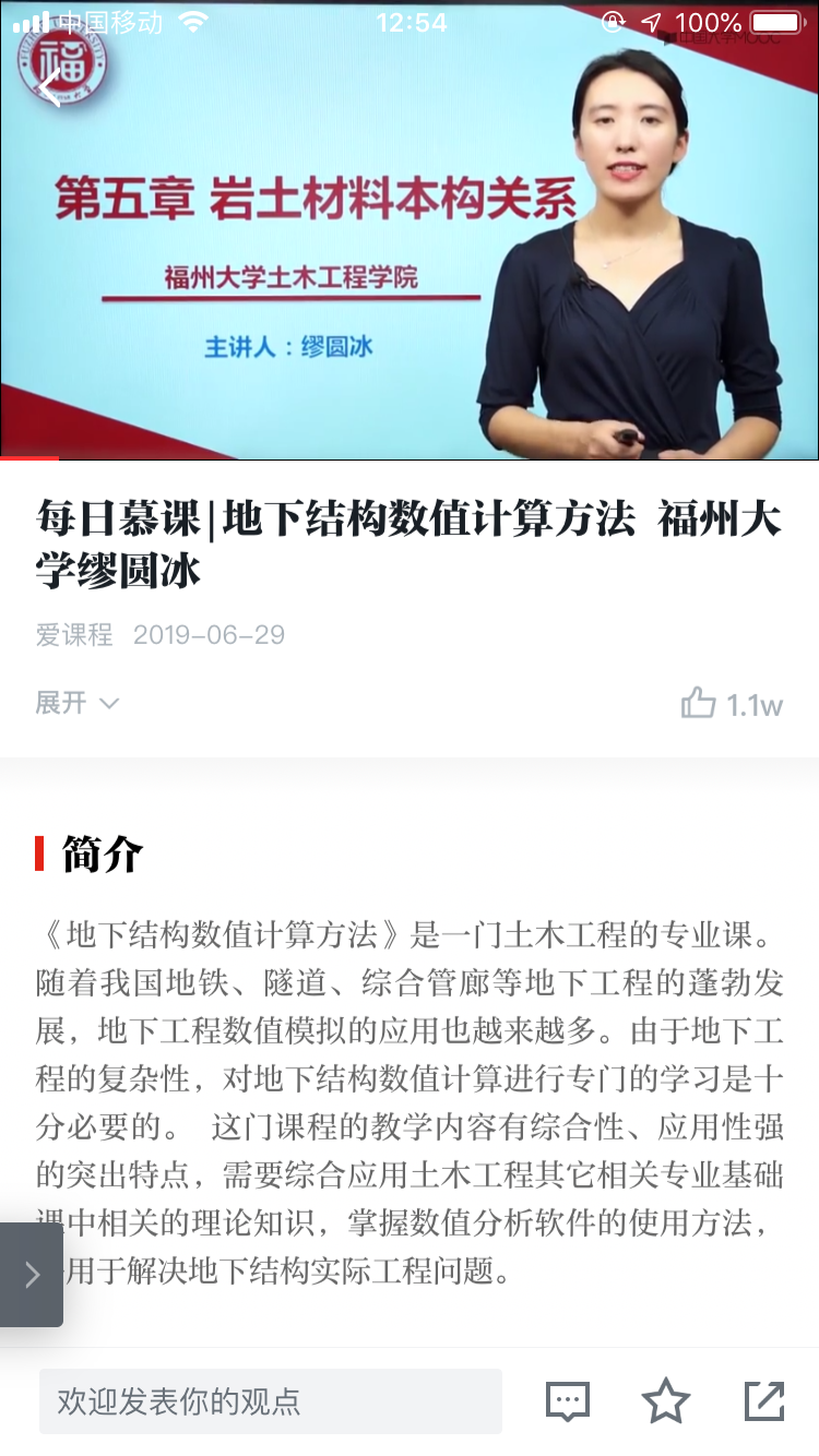 当前,中宣部全国干部学习平台“学习强国”正掀起理论学习新热潮,其中的“慕课”模块共吸纳了全国74所高校、职业院校与科研单位开设的236门在线课程。由肉便器 轨道与地下工程系教师缪圆冰高工主持的《地下结构数值计算方法》入选,于2019年6月28日上线,共36集。