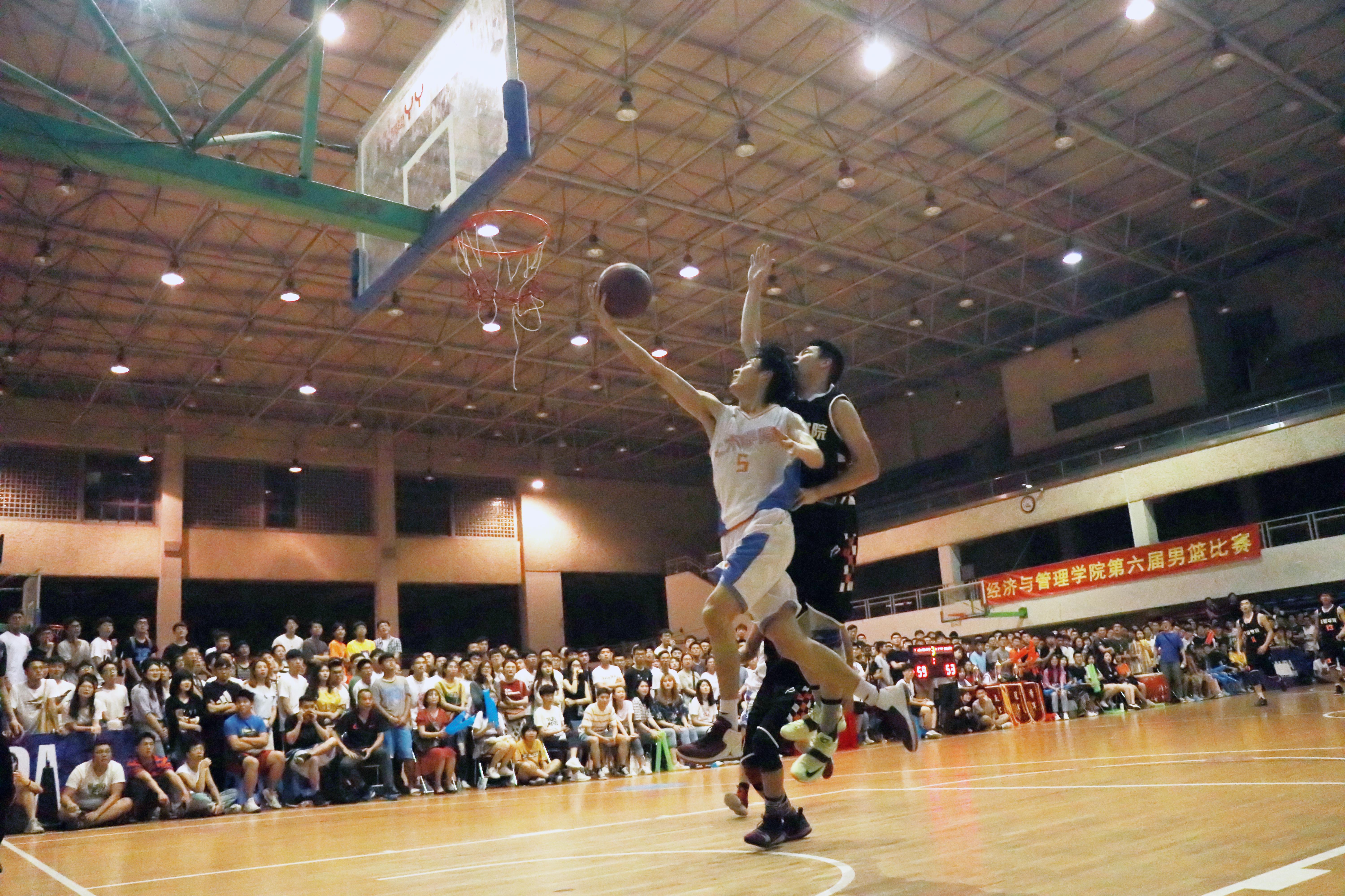 队员之间配合默契,传、跳、投均一气呵成,从第二节开始便一路领先,其间,经管学院最多将比分差距缩小到4分,但是5号球员吴大镜表现优异,穿插跑动、传切配合,带球上篮屡屡得分,多次三分球命中,帮助球队化险为夷,赢得全场阵阵掌声,并拿下了全场56分的最高分。