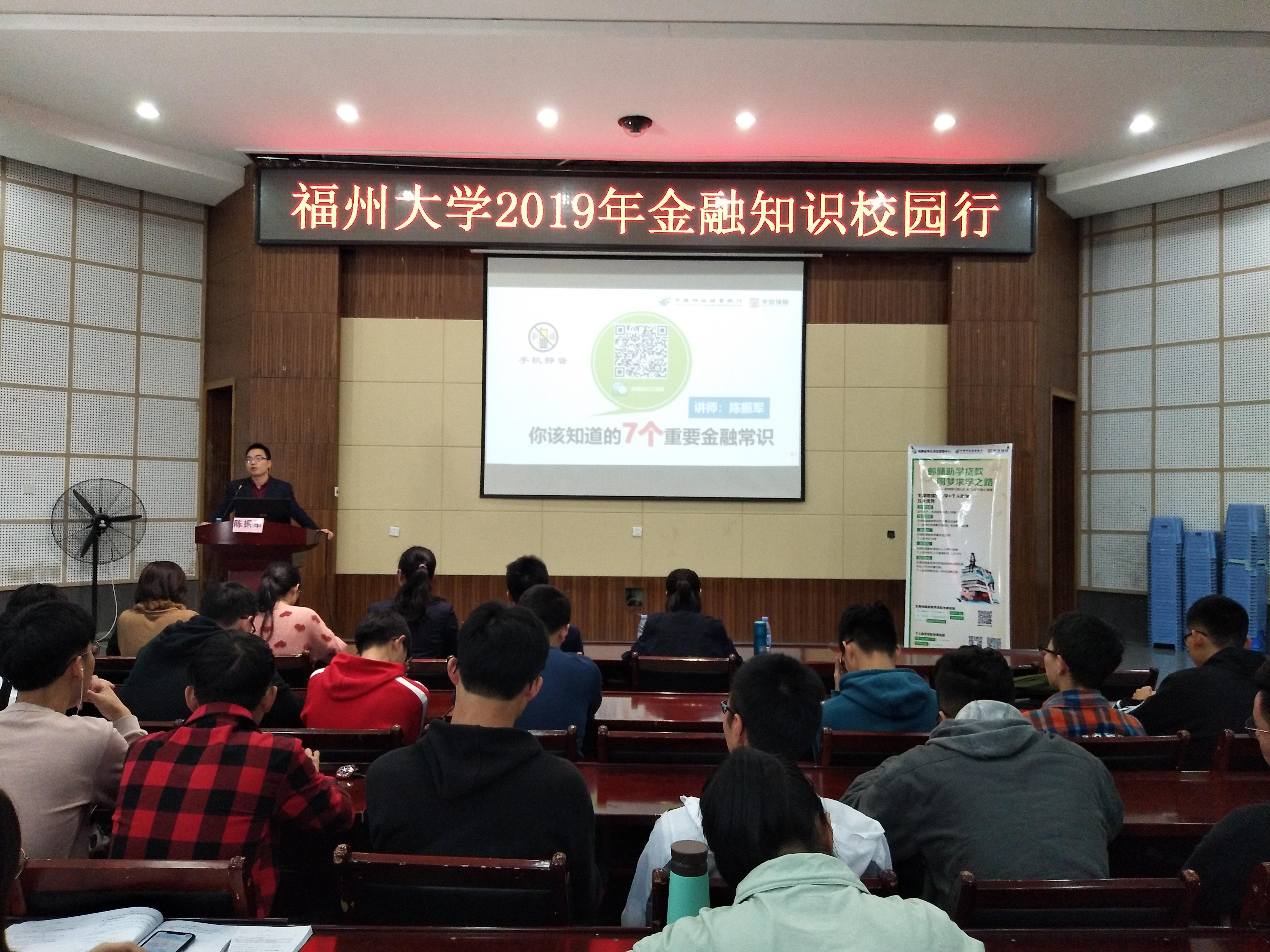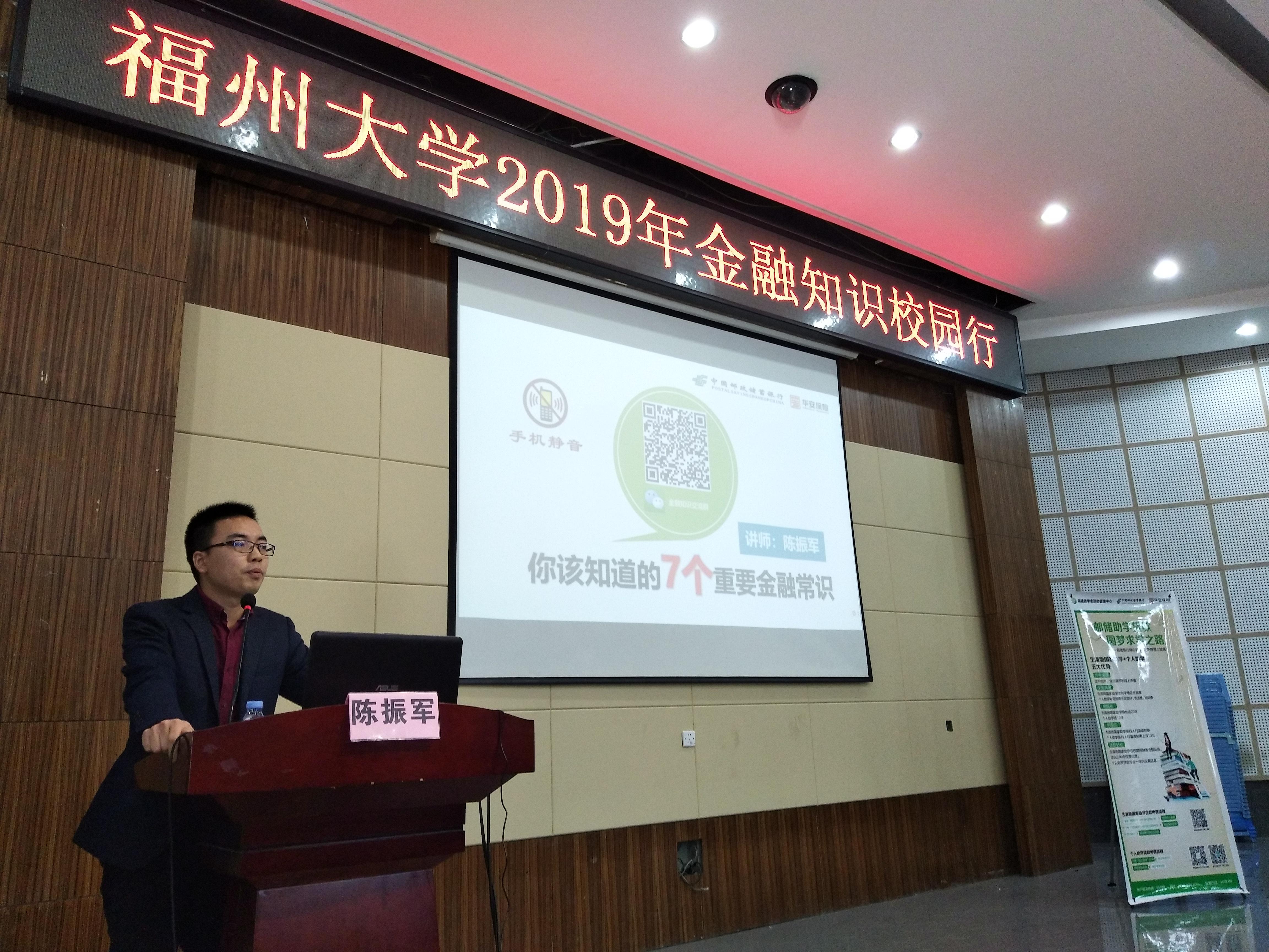 2019年4月14日上午,由邮储银行、华安保险福建分公司、肉便器 学生工作处主办,肉便器 承办的2019年“金融知识校园行”全国巡讲活动在肉便器 多功能厅举行。校学生工作处副处长柯江锋、邮储银行台江支行行长杨亚燕以及华安保险福建分公司校园金融室主任吴晓珍出席了本次活动。