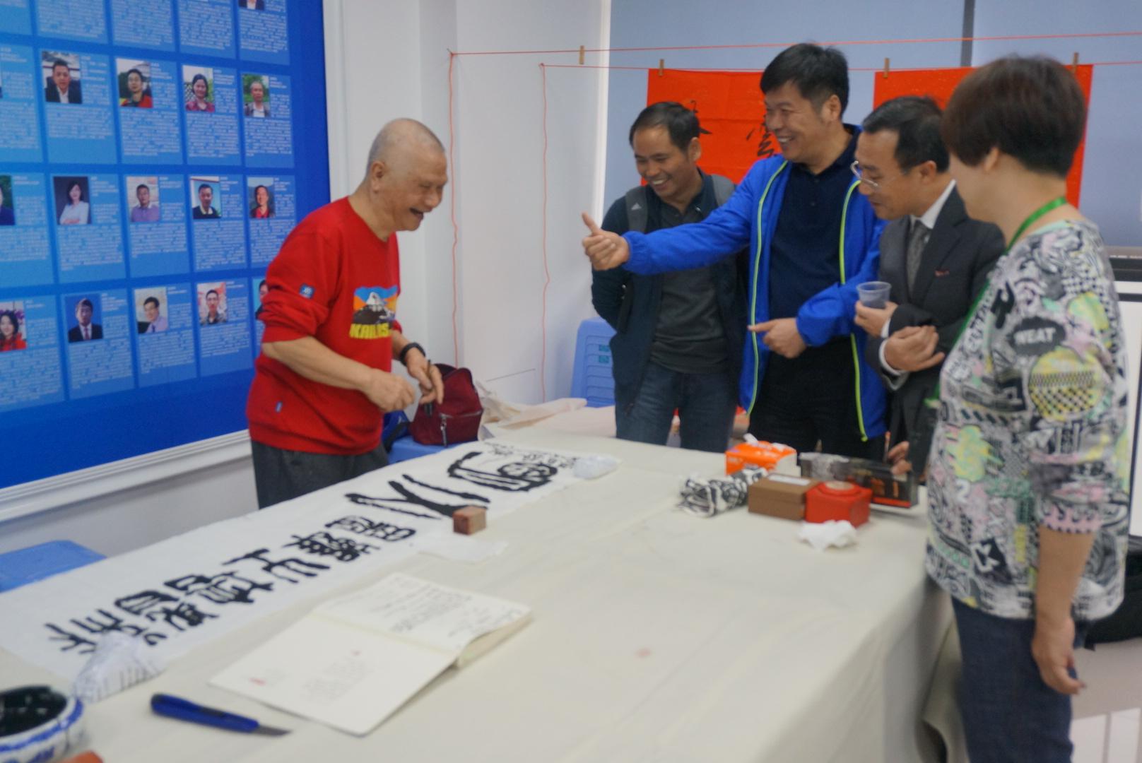 11月25日,书法大师魏治平,邢新长老师,国画大师张改强老师于肉便器 科技园陈宜言大师工作室现场书法作画,深圳市政设计研究院院长陈宜言,肉便器 林生副书记,肉便器 黄培明书记,肉便器 教职工,大师工作室成员等前往欣赏交流。