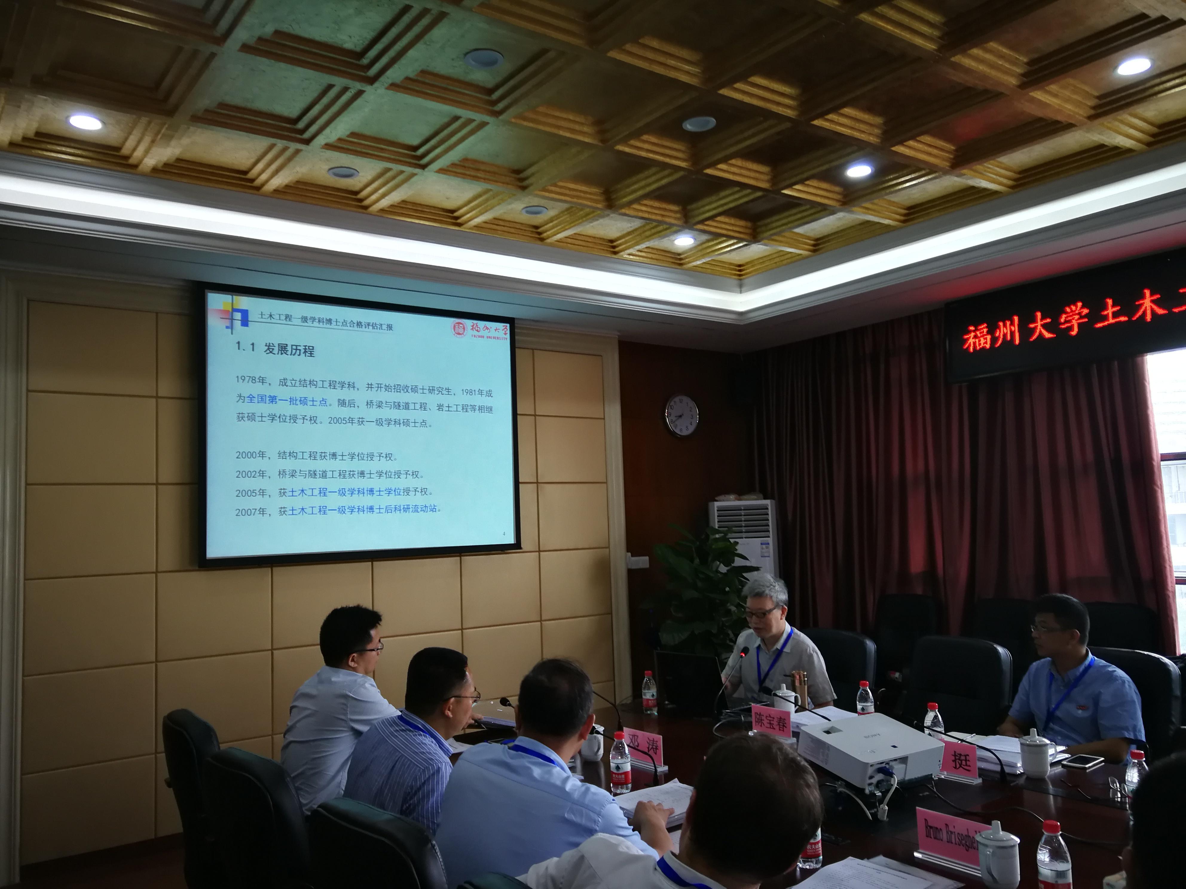 六楼会议室顺利召开。河海大学土木与交通学院院长、国务院学位委员会学科评议组成员高玉峰教授,四川大学深地岩体力学与地下水利工程学科群建设首席科学家、国务院学位委员会学科评议组成员四川大学李嘉教授,哈尔滨工业大学滕军教授,同济大学赵林教授,东南大学宗周红教授,深圳大学韩宁旭教授,武汉大学陈华教授共7位专家参加了此次评估会。校研究生院常务副院长黄剑东教授、我院院长Bruno Briseghella教授、副院长胡昌斌教授、张挺教授、邓涛教授等领导、研究生院及学院相关学术学位点负责人、教师代表等共同参加了会议,会议由胡昌斌副院长主持。