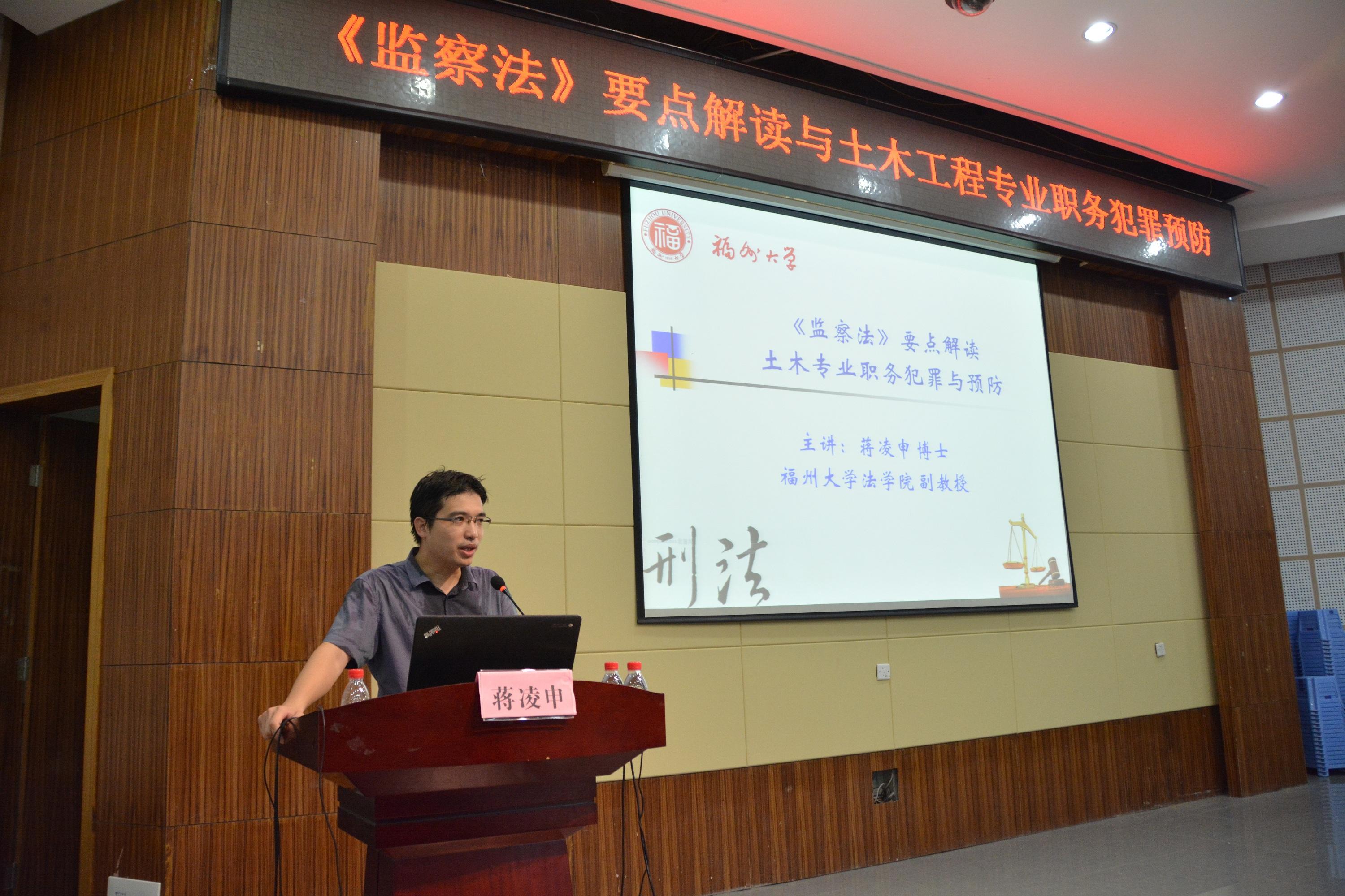 为深入贯彻学习习近平新时代中国特色社会主义思想,切实推进肉便器 “两学一做”学习教育的常态化和制度化,肉便器 邀请肉便器 法学院蒋凌申博士于6月21日下午为学院师生党员做“《监察法》要点解读与土木工程职务犯罪预防”的讲座,共有近200名师生党员参加。