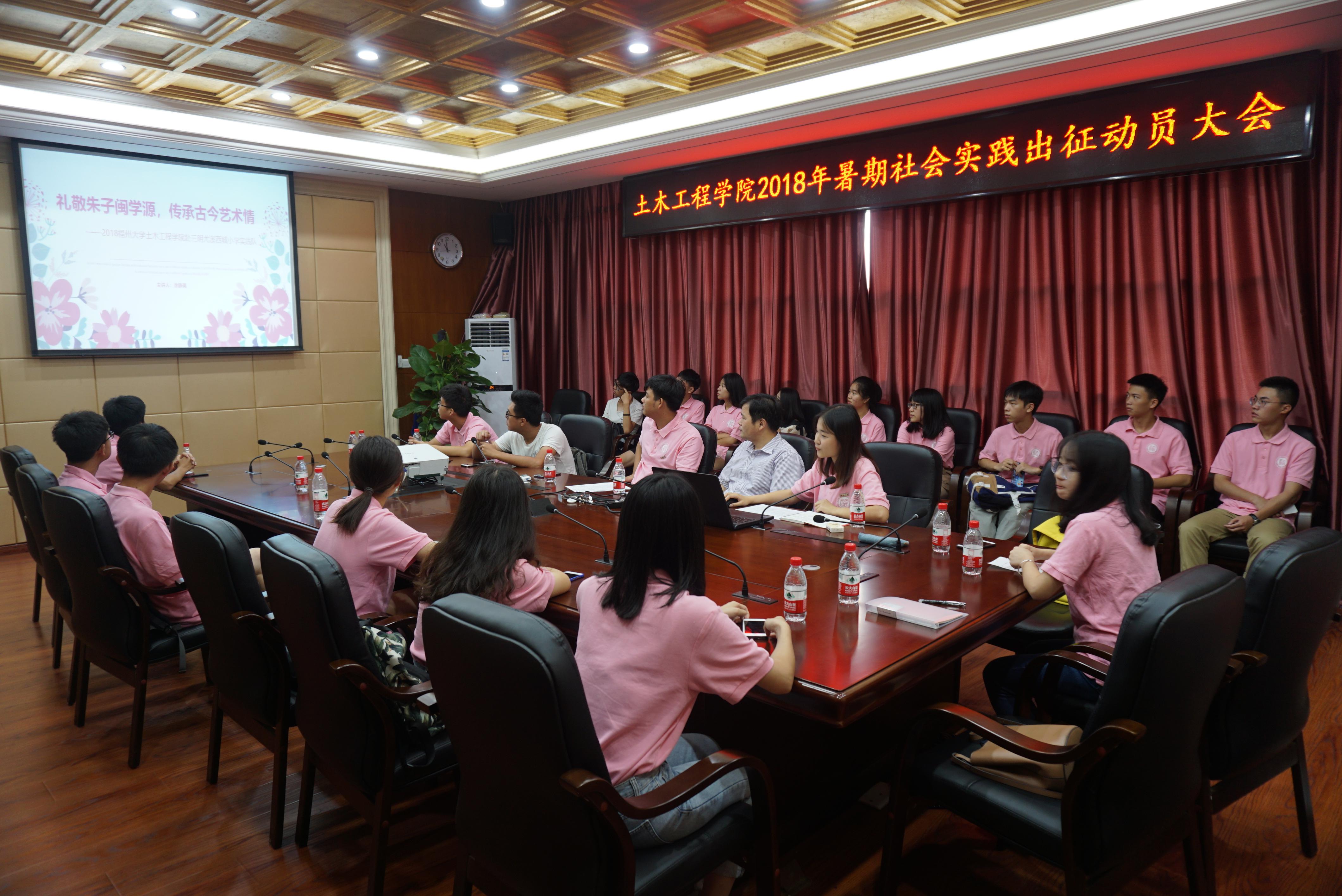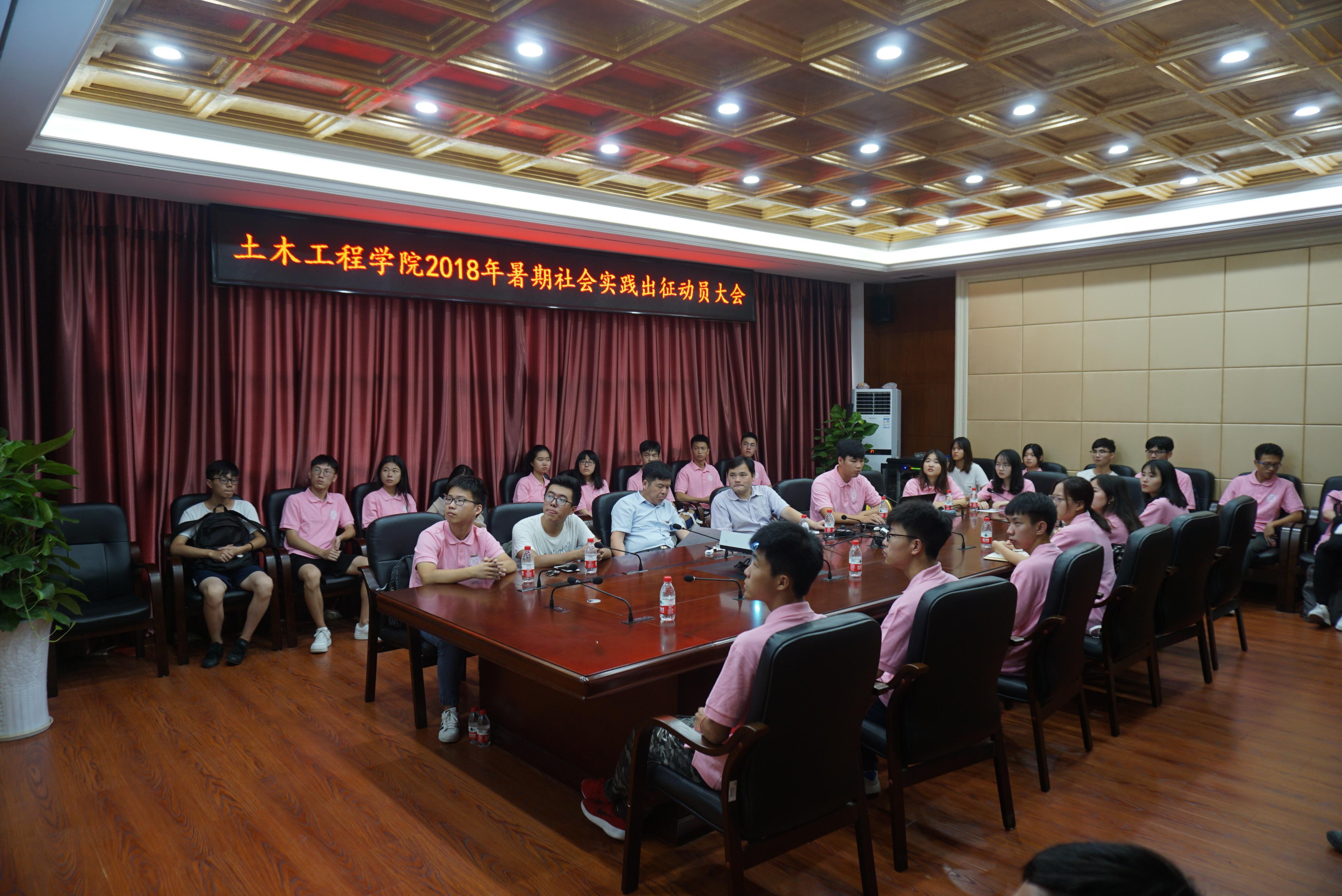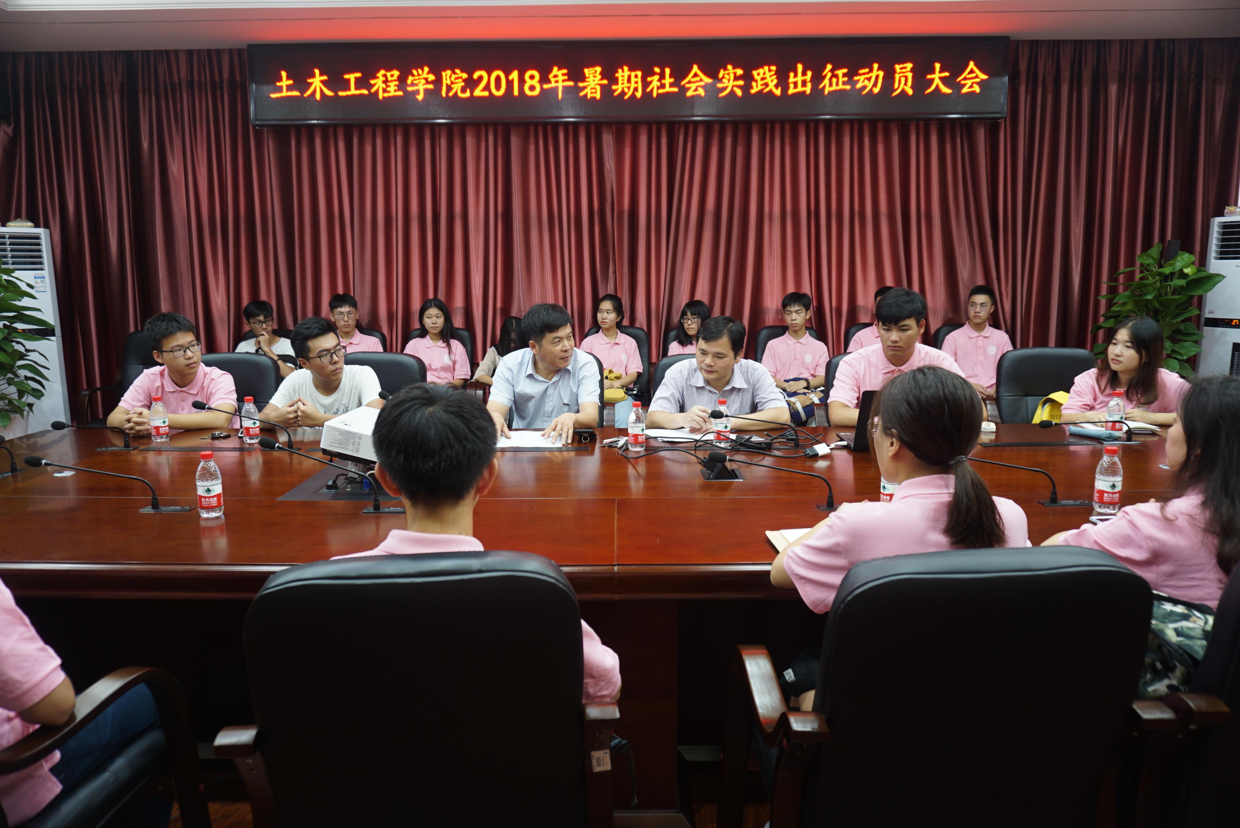 于学院楼六楼会议室召开2018年暑期“三下乡”社会实践队出征动员大会。院党委书记黄培明、团委书记许长宾以及各实践队代表出席了本次动员大会。
