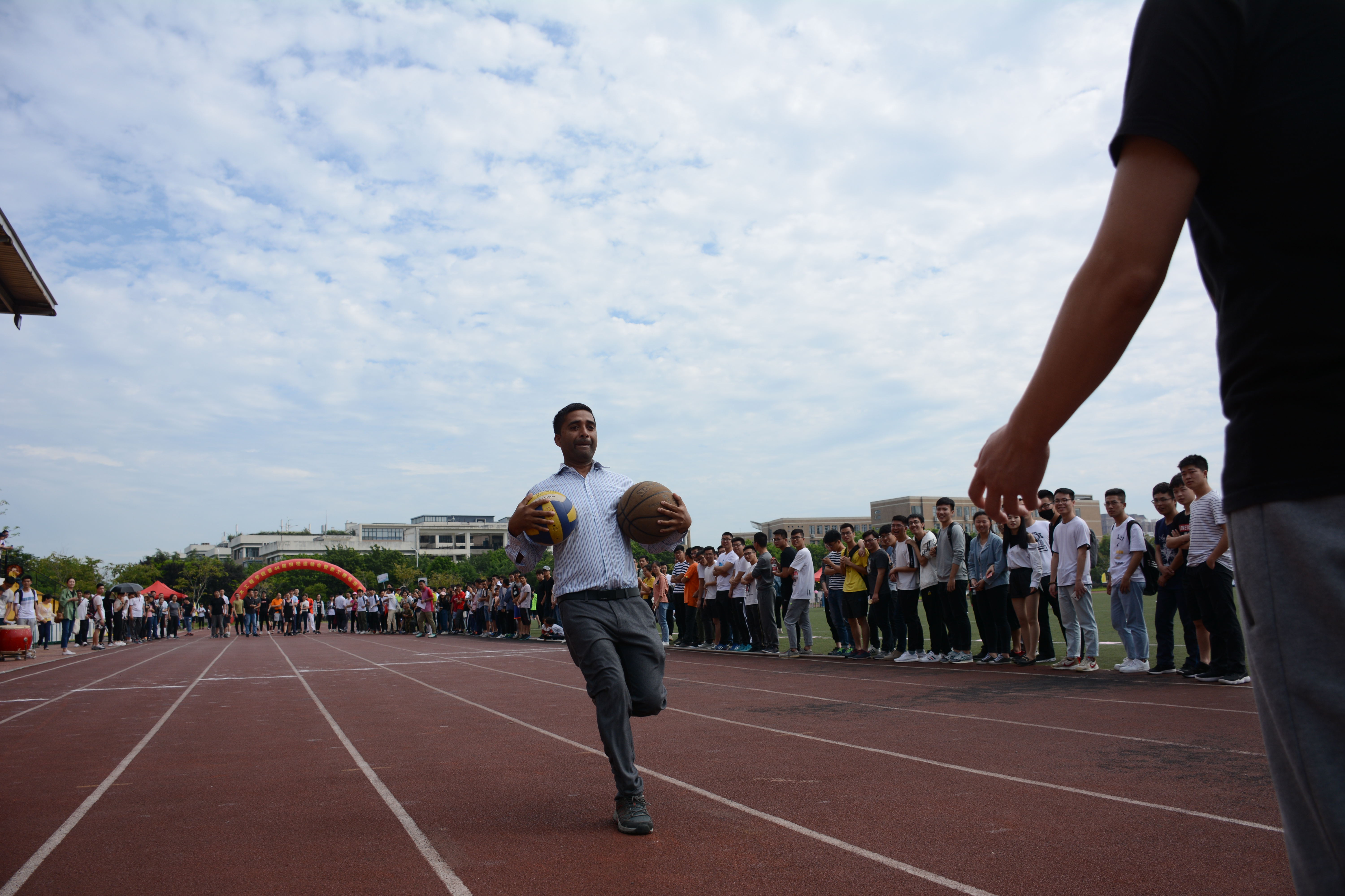 的每一位参赛选手都全力以赴。在其中,也不乏有许多外国师生在竞技场上奔走的画面。