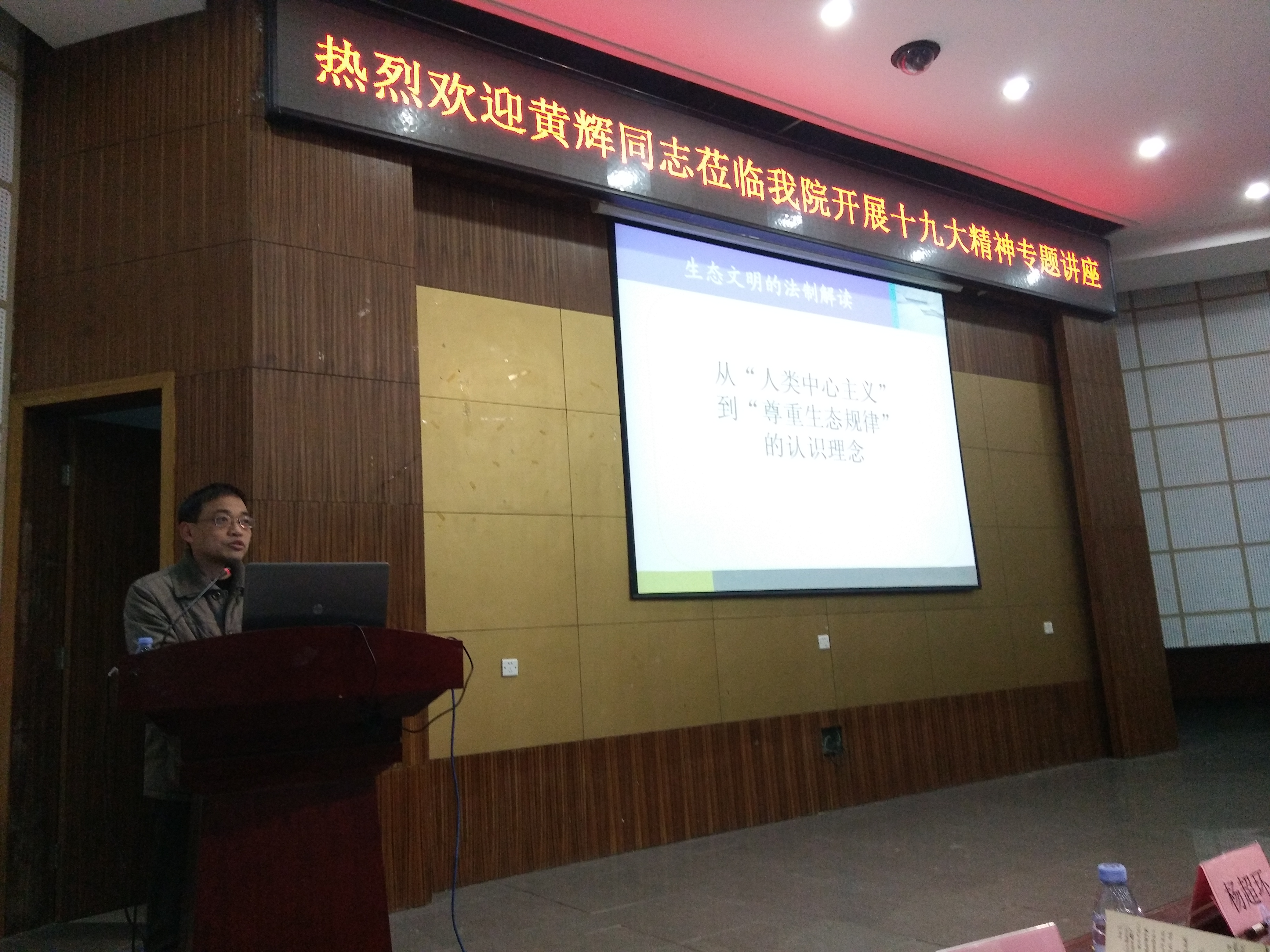 学术报告厅,开展题为《生态文明与法治中国》的专题讲座。院党委副书记余飞、各年级辅导员、教工、学生党支部书记以及240余名学生党员参加了此次讲座。