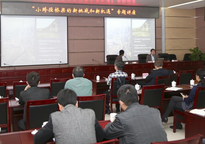 众所周知,我国桥梁建设高速发展带来一系列耐久性问题,特别是量大面广的中小跨径桥梁的耐久性,是全面提升福建省乃至我国桥梁工程可持续发展的至关重要的一环。Dougalas Paul Gauvreau教授结合其自身主持和参与的桥梁设计和科研试验展示加拿大对于小跨径桥梁耐久性研究的最新发展。学术报告后,Dougalas Paul Gauvreau教授和福建省交通规划设计院的多位技术骨干进行了深入交流。