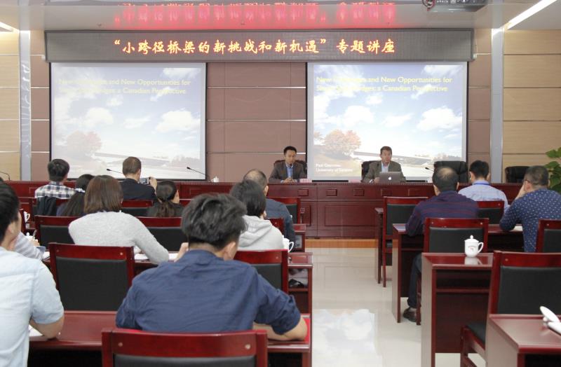 院长Bruno Briseghella教授和加拿大多伦多大学Dougalas Paul Gauvreau教授应邀前往福建省交通规划设计院交流。教授和加拿大多伦多大学Dougalas Paul Gauvreau教授做了题为“New Challenges and New Opportunities for Short-Span Bridges: a Canadian Perspective小跨径桥梁的新挑战和新机遇:加拿大观点”的学术报告。福建省交通规划设计院寇军院长和副院长兼总工程师刘秋江参与会见,讲座由党委副书记陈阵主持。