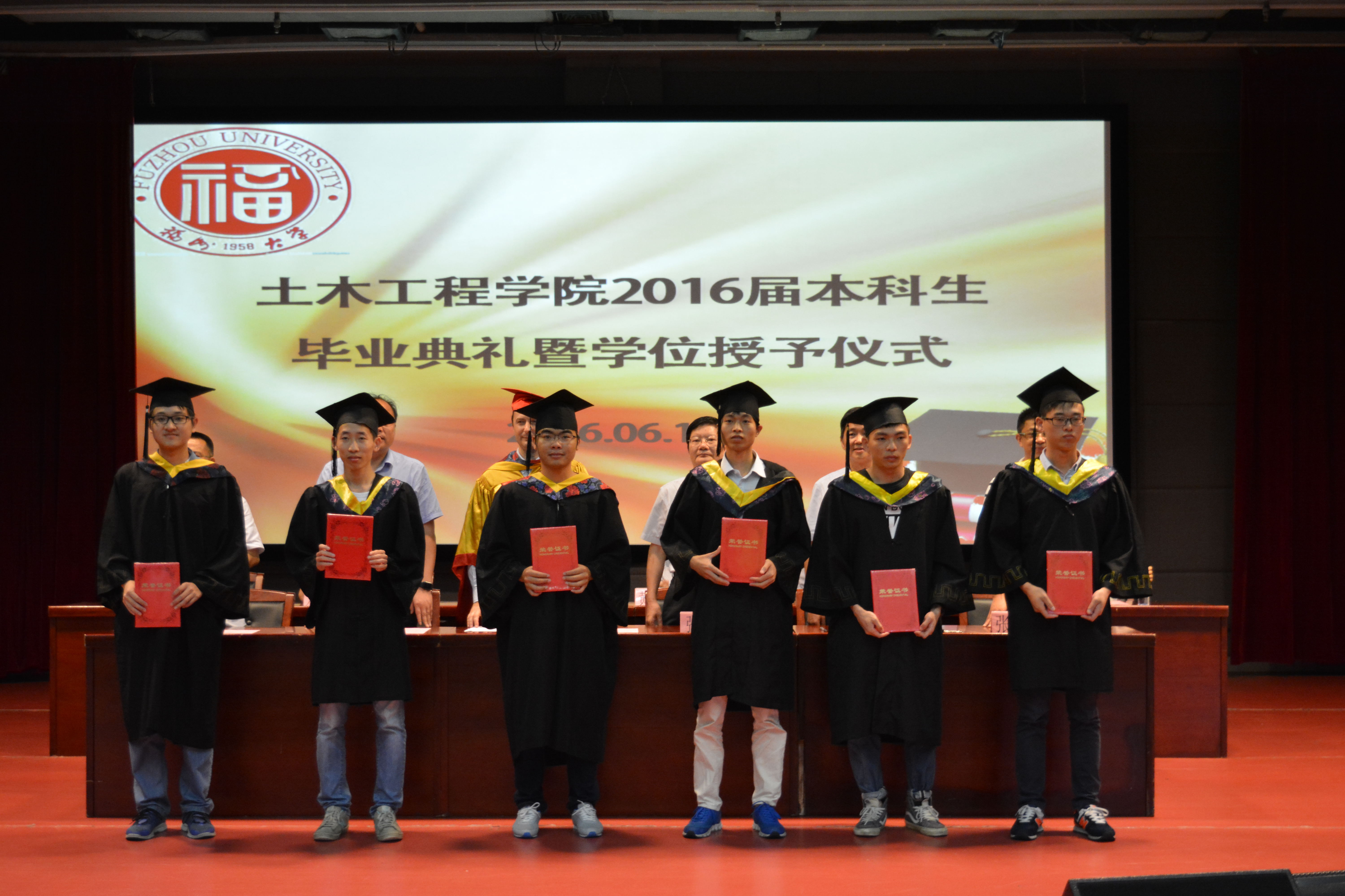 的悉心栽培表示深切谢意;在台下毕业生的掌声中,毕业生代表辛怀佳发表讲话,其来自毕业生的独特视角和充满感情的演说使得在场观众无不动容。在全体师生的见证下,学院助学金交接仪式成功举行,承载着毕业生对学院深切心意的助学金,将帮助更多的土木学子积极奋进,完成学业。最后,在典礼进行布鲁诺院长颁发毕业证书、学位证书,学位授予仪式,一名名土木学子在同学亲友的见证下,庄严的完成了大学四年的土木学习生涯。