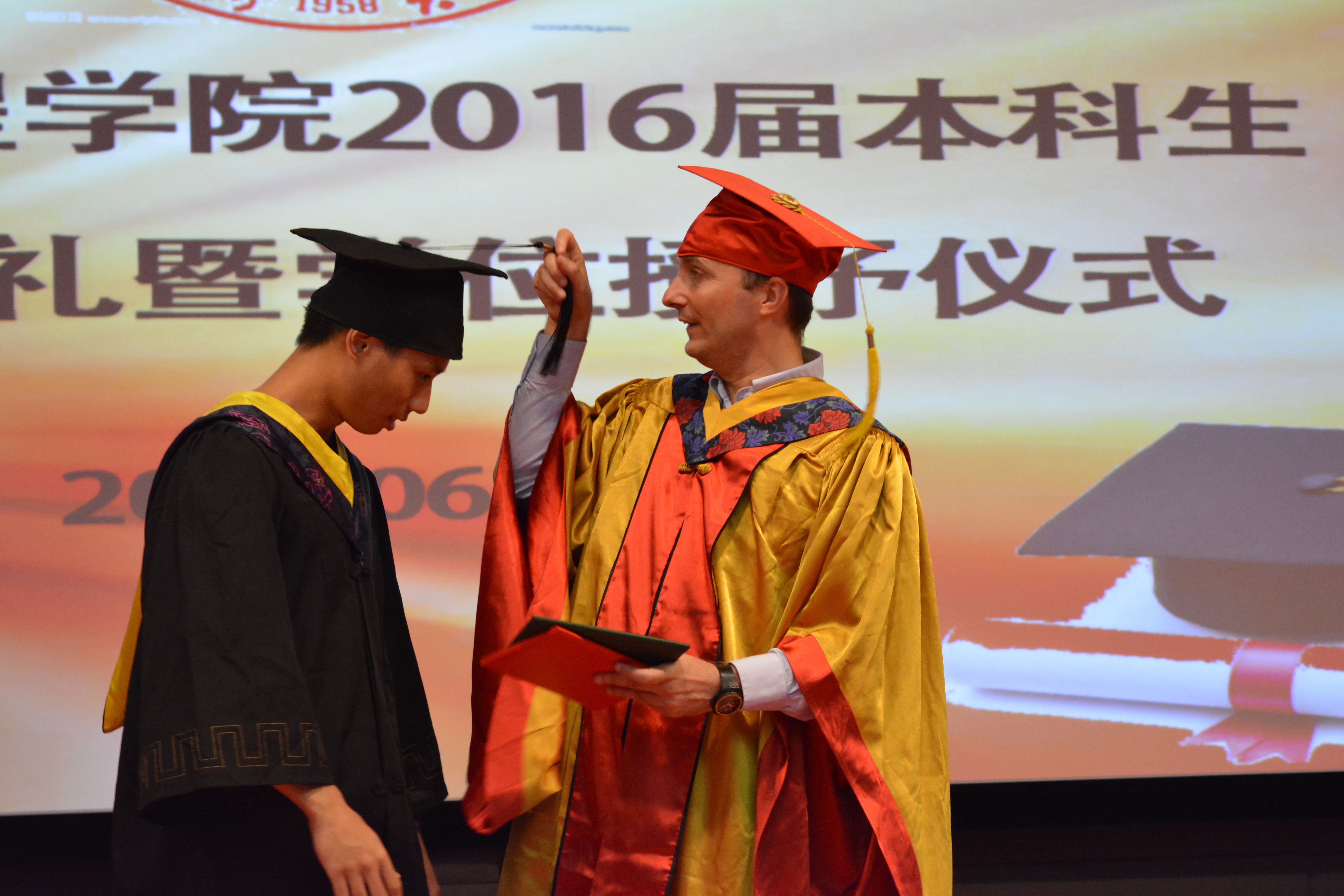 院长亲自为毕业生拨穗