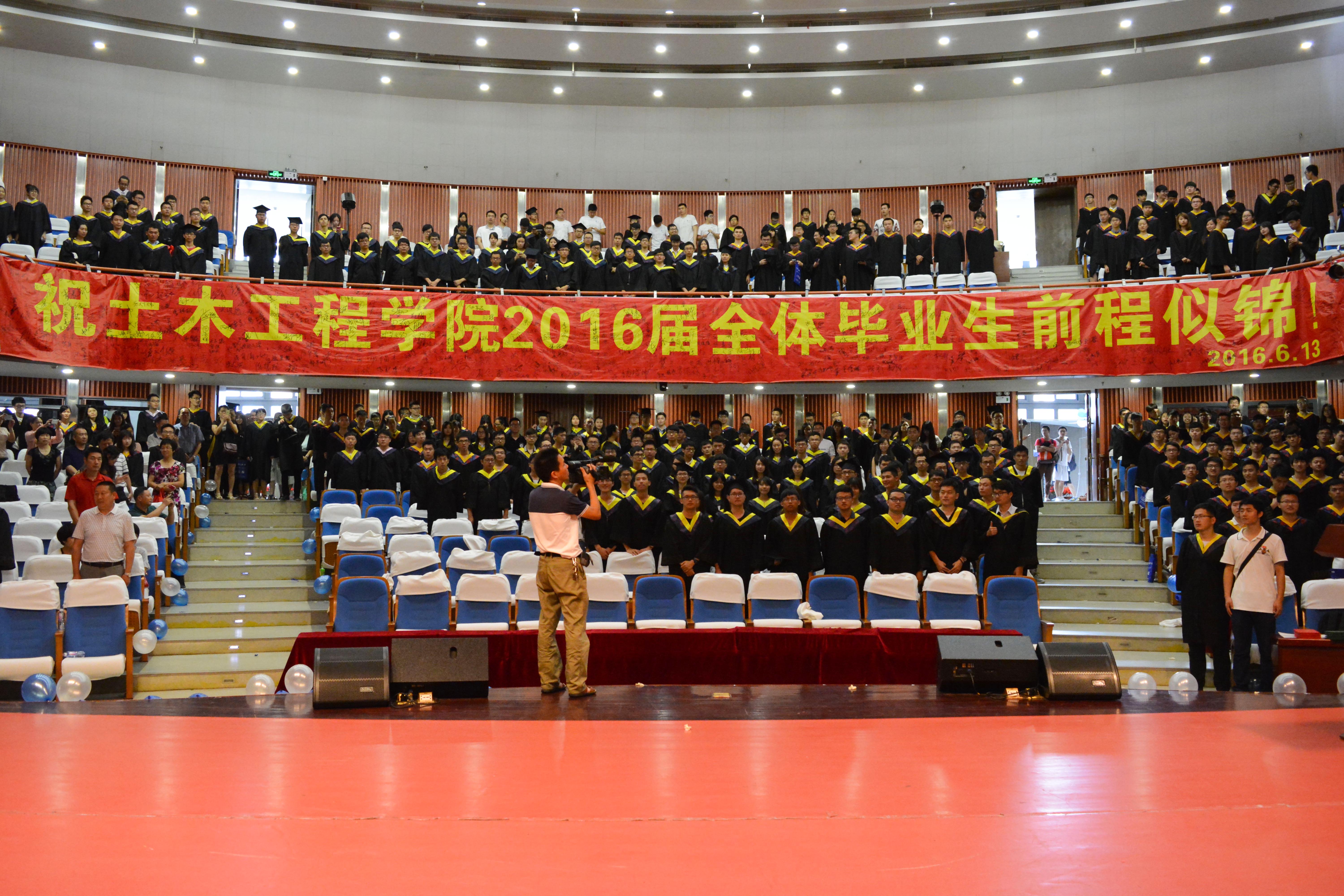 在典礼尾声,全体毕业生合唱《毕业歌》,在歌声中,同学们展翅高飞,胸怀理想,志存高远,锐意进取,为梦想奋斗,开创幸福,此次2016届毕业典礼暨学位授予仪式也宣告圆满结束。