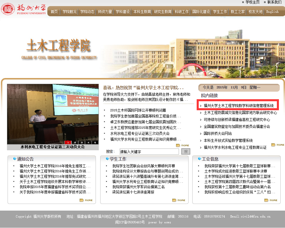 试运行阶段(即日起至11月30日)请老师们进入系统录入2015年各类教学科研信息和往年的信息),在试用阶段如有问题和建议请反馈给吴燕和林伟。
