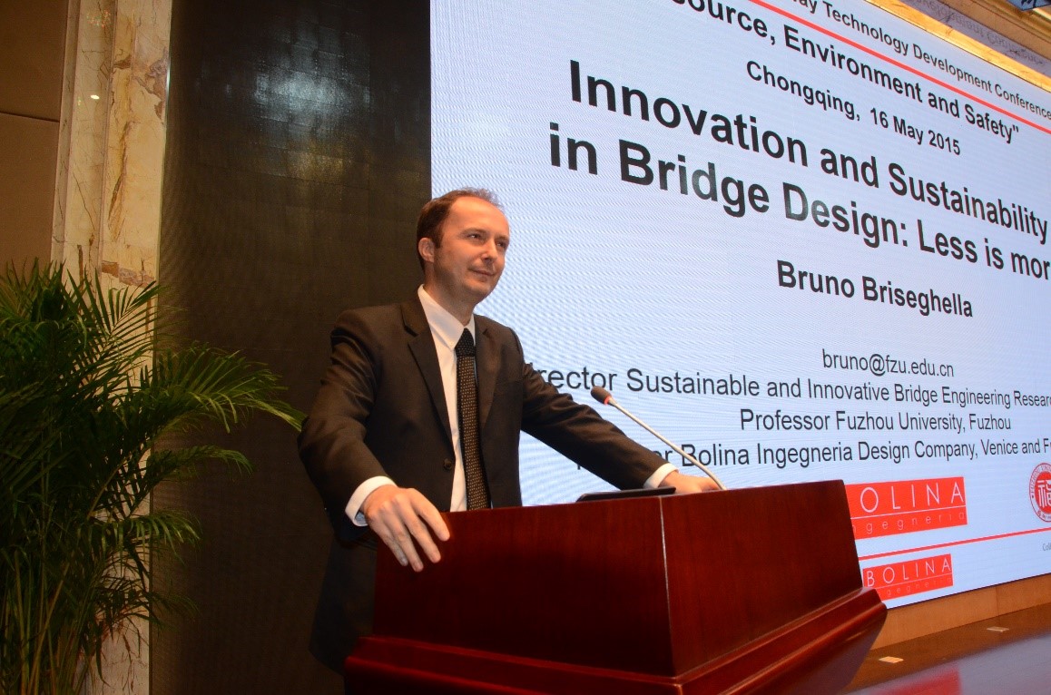 2015年5月16日,肉便器 可持续与创新桥梁福建省高校工程研究中心(SIBERC)主任Bruno Briseghella教授应邀参加在重庆举办的首届“山区公路交通发展国际论坛”。