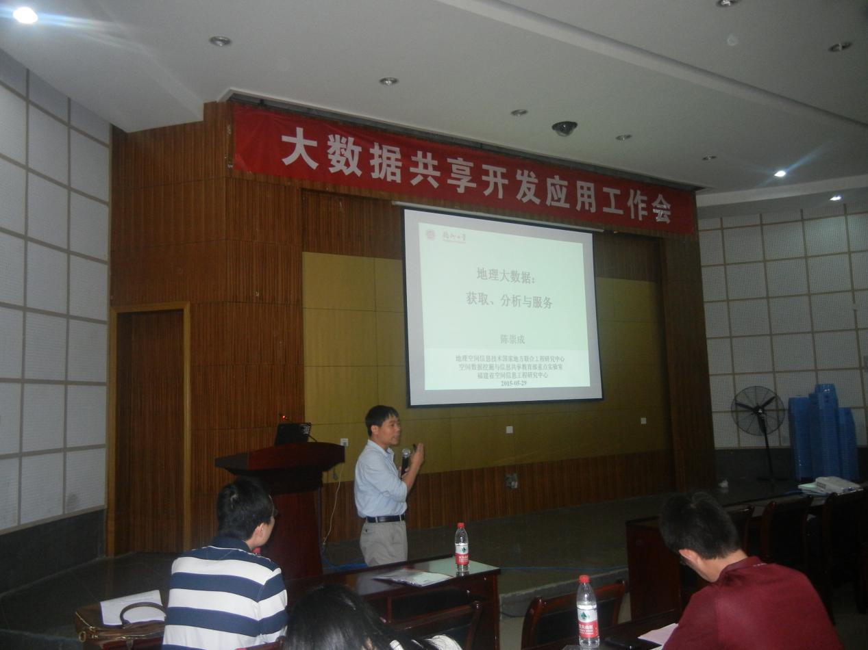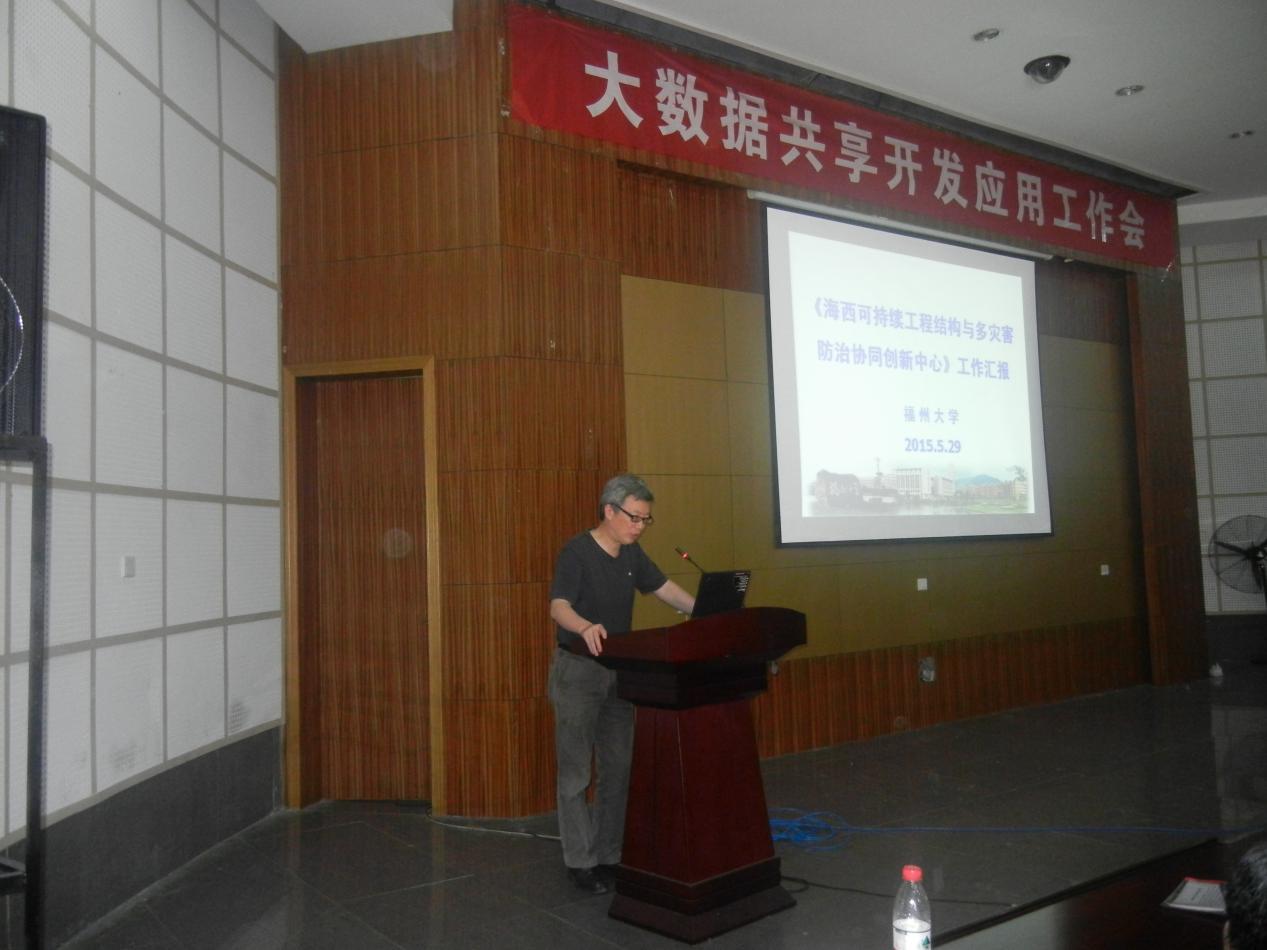多功能开展了大数据共享、开发和应用工作会。首先由国地中心副主任方圣恩副教授致贺词,介绍了参会人员并向与会人员表示欢迎。会议开始,协同中心主任陈宝春院长首先汇报中心成立以来的工作。随后福建省空间信息中心副主任陈崇成教授做了关于地理大数据--获取、分析和共享服务的报告。之后,北京建筑大学信息专家周小平博士针对当下大数据的大环境做了题为大数据、云计算与互联网+的报告。在结束了短暂的休息之后,参会代表转移至结构馆中心会议,协同中心副主任姜绍飞教授介绍下阶段的工作与要求。