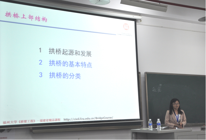 教师王文平讲授了题目为“拱桥上部结构”的教学演示,其精美的课件、灵活的教学手段、清晰的思路、丰富的言辞得到了参会资深教师一致好评,为与会代表就如何上好《桥梁工程》及相关课程,展示了丰富而精彩的一课。