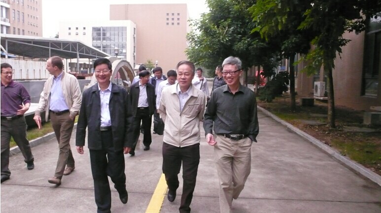 党委书记张和秋、院长陈宝春陪同专家去参观结构馆、水利馆实验室