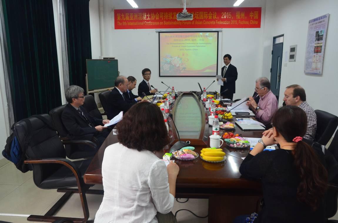 院长陈宝春教授,亚洲混凝土协会(ACF)主席Koji Sakai教授在会议开始前分别致贺词,向出席论坛会议的各位教授、参会代表表示欢迎,并充分肯定了此次论坛召开的重大意义。会议开始,学院的庄一舟教授首先拟定了关于在中国混凝土和混凝土结构可持续发展的报告,随后,Donguk Choi教授向参会代表介绍了亚洲混凝土协会(ACF)可持续发展论坛的首份报告。10:50-11:50,在结束了短暂的休息之后,在场的各位教授,与会代表围绕“亚洲混凝土协会(ACF)可持续发展专题国际论坛的未来发展方向”问题进行了深入的交流与探讨,最后,协会主席Koji Sakai教授致结束辞,各位教授,参会代表们在简单的午餐后稍作休息。进行了一上午的会议也告一段落。下午14:00-18:00各位教授和参会代表们进行了技术考察。第一天的会议也到此结束。