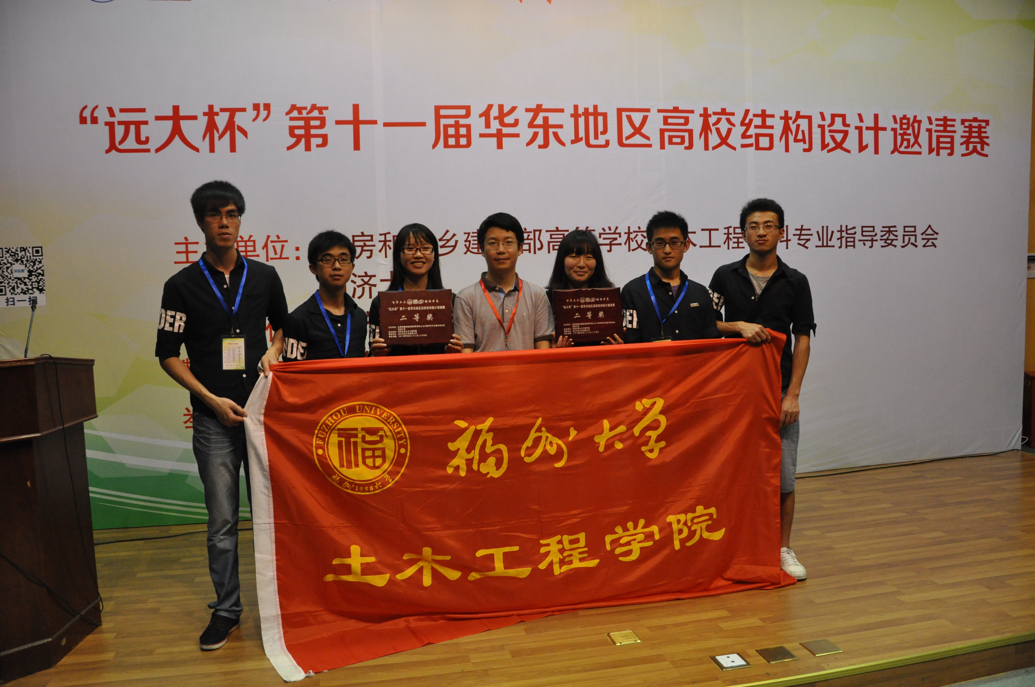 两组参赛作品在众多作品中脱颖而出,由庄鸿伟,陈宽,陈秀琪组成的福大一队以及由杨超环,徐会强,林媛媛组成的福大二队于此次比赛中获得了两个二等奖的优异成绩,一举战胜了上海交通大学代表队,浙江大学代表队,东南大学代表队二队,河海大学代表队二队,南京航天航空大学代表队,合肥工业大学代表队,青岛理工大学代表队,福建华侨大学代表队等众多名校代表队。