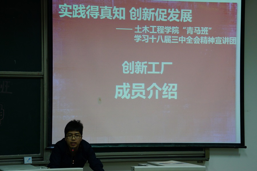 “青马班”对十八届三中全会精神进行了较为系统与全面的学习。“青马班”学员组建了5支学习十八届三中全会精神宣讲团,并成立专门宣传小组对活动进行及时的报道。“青马班”通过将宣讲信息和预约方式发布到各宣传平台上,各班级团支部的积极响应并且及时预约了自己感兴趣的宣讲团。