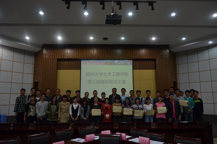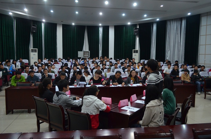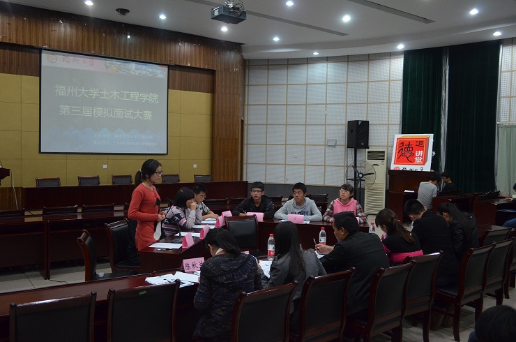 2013年11月22日晚,“第三届职场文化节之模拟面试大赛”在土木多功能厅顺利开展。出席本次比赛的评委老师有团委副书记陈秋兰及各年级辅导员。