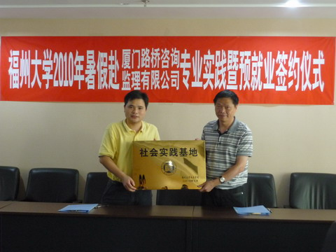 赴厦门路桥咨询监理有限公司实践服务团为期7天,一行10人,在学院团委副书记许长宾老师带领下,主要围绕“就业创业与海西建设调查”展开。期间,领队许长宾老师与该公司刘德全总经理签订了《肉便器
