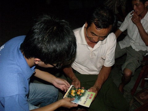晚上,我们带着各类科技书籍,送到农户们那里,让他们有机会多学习一些果树的种植技术以及养殖技术等。其中有针对黄龙病等病虫害的一些防治措施。然后我们也提出了一些自己的想法,在山上可以发展综合性、立体化农业,比如各类经济作物适当的混合种植,发展无公害家禽养殖等。这让我想到了,科学是第一生产力。我们要与时俱进,农村发展也要靠科技。在高兴之余,老乡还为我们表演了洞箫的吹奏。