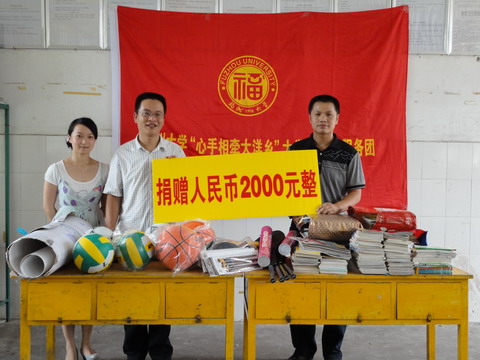 向大洋乡中心小学进行爱心捐赠活动,将人民币2000元、体育用品、书本等捐与中心小学校长。