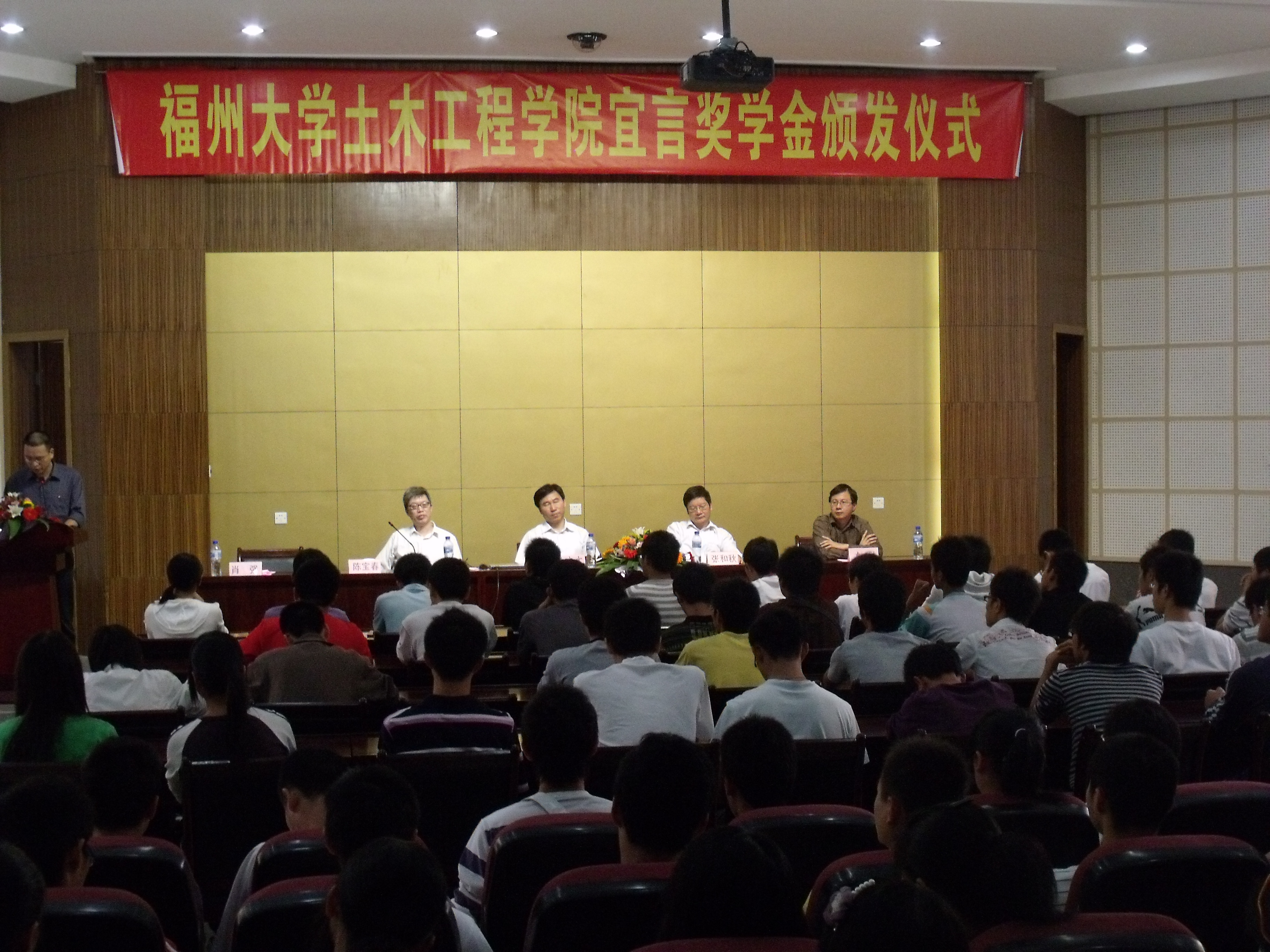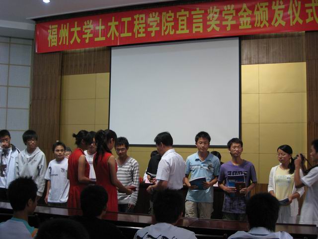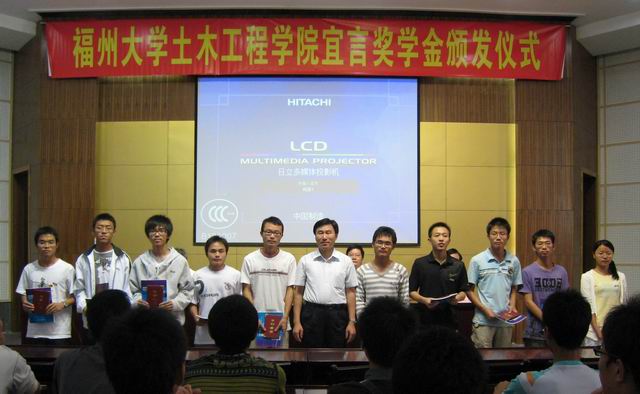2009年10月24日上午九点,肉便器 宜言奖学金颁奖仪式于土木工程院楼多功能厅举行,深圳市政设计院陈宜言院长、肉便器 院党委书记张和秋、院长陈宝春、副院长卓卫东、院团委肖强副书记以及各年级辅导员参加本次大会。