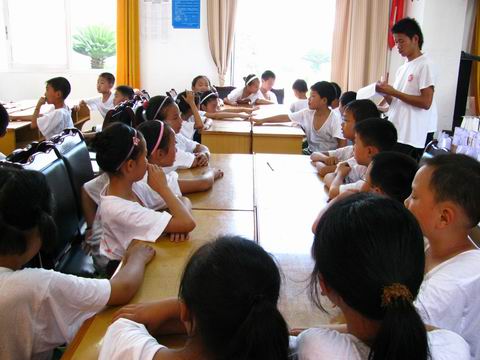 08级牟邦跃、杨浩授课。先是开展成语接龙的游戏,以检验孩子们的平时积累的成语量,并锻炼他们的反应能力、团队合作意识。然后授课同学给孩子们讲授了有关甲型H1N1流感方面的知识,在这节课中孩子们不仅学到了流感的预防知识,而且学会了在疾病面前大家要团结一致才能抵抗灾难。此外,授课同学还给孩子们讲了有关建国60周年的相关知识,让大家对祖国的建设发展有更进一步的了解。